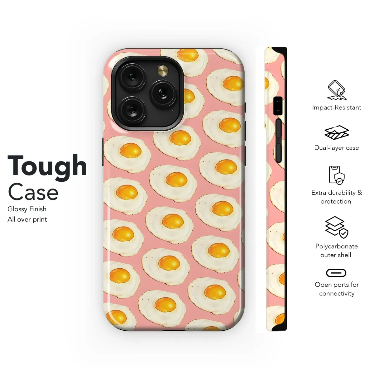 Add a playful and delicious touch to your daily essentials with this charming pattern featuring a cheerful breakfast theme. A delightful arrangement of perfectly fried sunny side up eggs forms a captivating repeat design, bringing a dose of culinary fun wherever you go. Each egg boasts a vibrant golden yolk and soft white, beautifully rendered against a cheerful pastel pink background. This unique illustration combines a love for food with a retro-inspired, whimsical aesthetic, creating a design that is both eye-catching and heartwarming. Imagine carrying a little piece of brunch happiness with you, adding warmth and comfort to your day. The high-quality digital artwork captures the intricate details of each egg, ensuring a crisp and vibrant print. This seamless pattern is an ideal way to personalize your favorite accessories, adding a pop of personality to electronic items or serving as a uniquely thoughtful gift for fellow foodies, home cooks, or anyone who appreciates charming, artistic designs. Its distinctive style transforms ordinary items into conversation starters, reflecting a joyful personality. Embrace the lighthearted spirit of breakfast anytime, anywhere, with this sweet and savory-inspired graphic that is endlessly stylish and fun. It’s perfect for expressing your individuality and ensures your belongings stand out with a look that is truly one-of-a-kind. This design is more than just a pattern; it's a mood booster, a mini piece of art that adds brightness and happiness to your world.