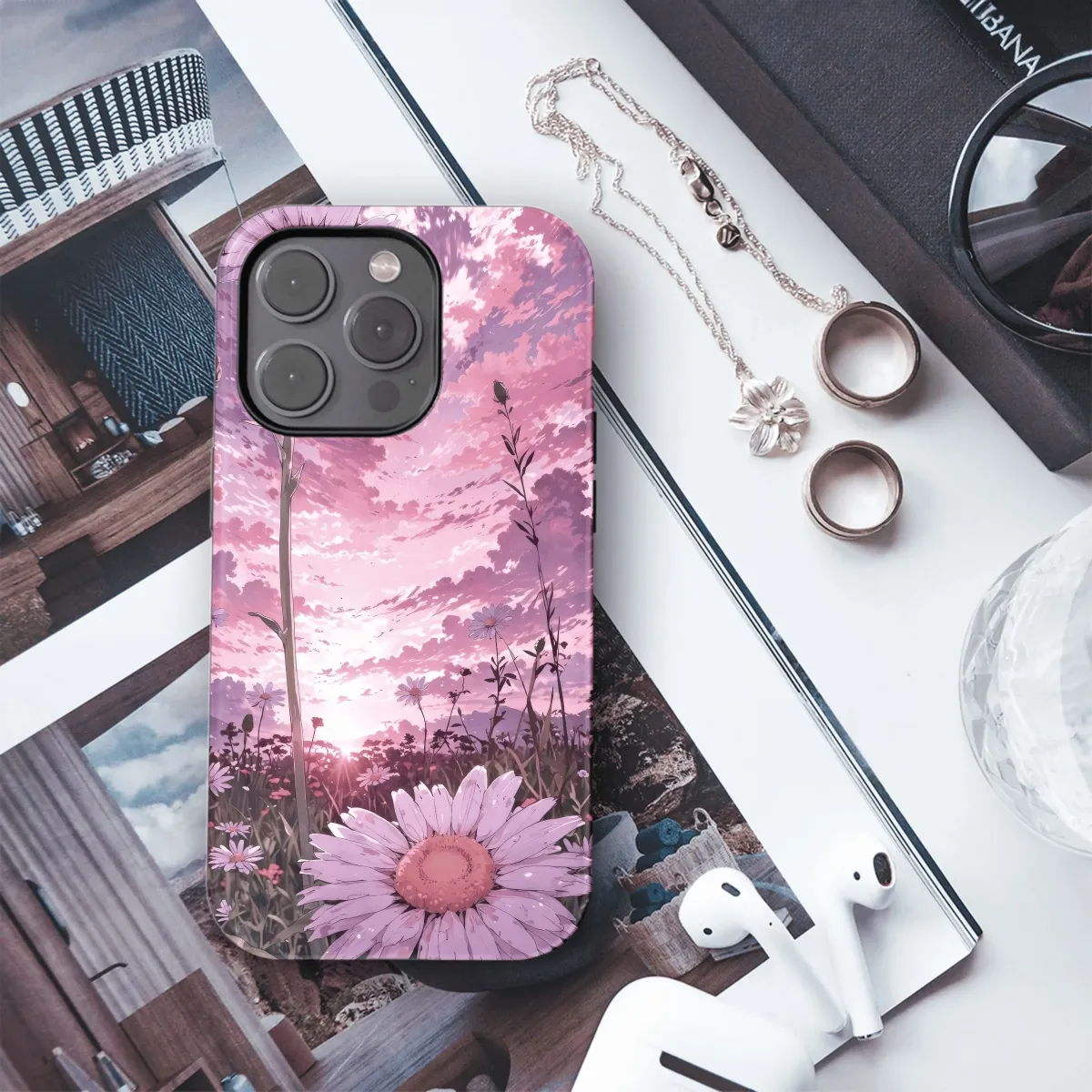 Introducing the Pink Sunset Daisies Phone Case - the perfect way to add a touch of nature's beauty to your daily tech. The vibrant, lifelike daisies against the soft pink sky background will transport you to a serene meadow every time you look at your phone. Our slim and durable case provides excellent protection for your device without adding bulk. Its smooth, matte finish feels great in your hand and resists smudges and scratches. Whether you're looking to brighten up your daily routine or simply express your love for nature, the Pink Sunset Daisies Phone Case is the perfect accessory. Its timeless design will complement any outfit and add a touch of whimsy to your everyday life. **Compatible with:** * iPhone * Samsung * Pixel 4516