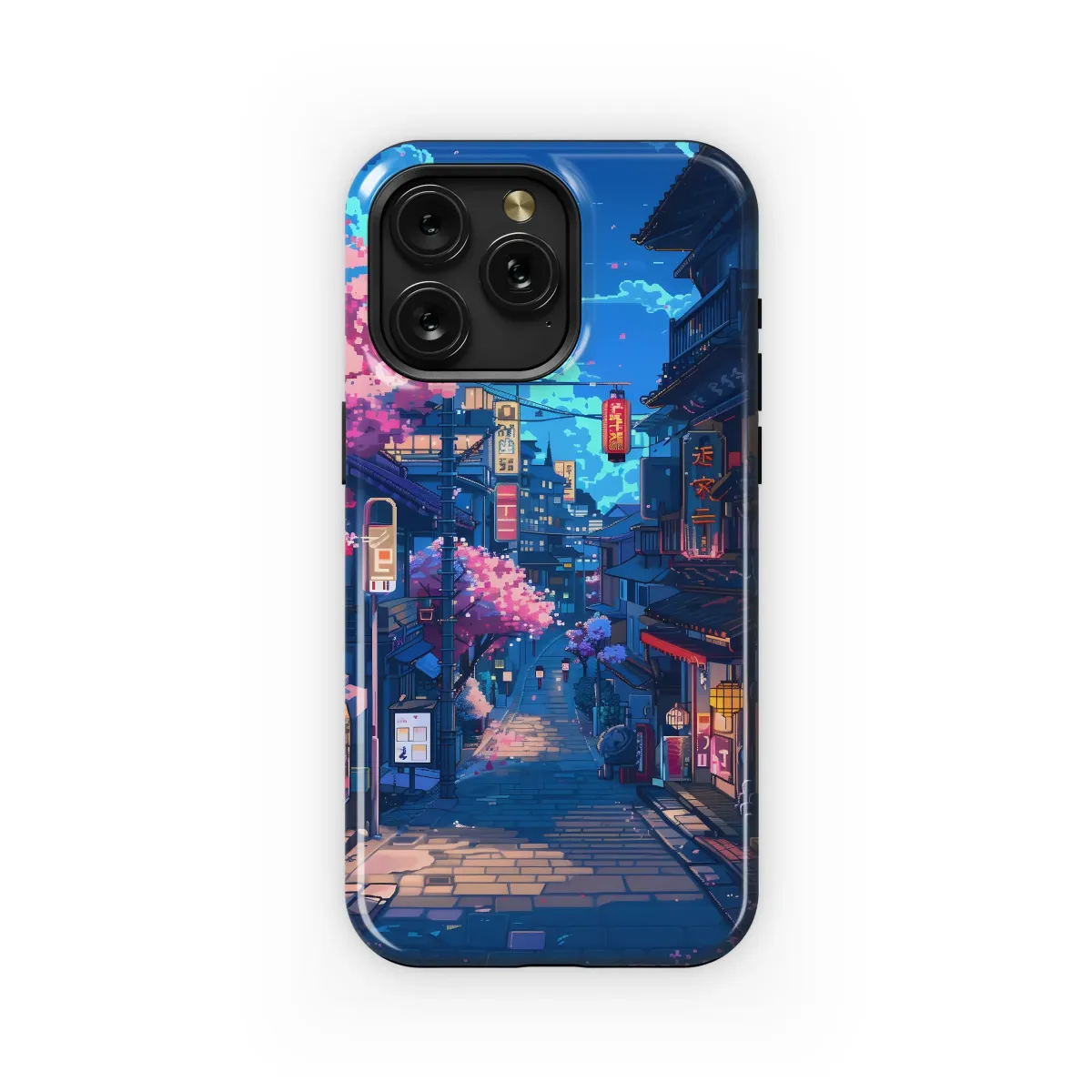 Elevate your style with this vibrant, pixel art design. This captivating artwork features a stunning nighttime scene of a charming Asian street, bathed in the soft glow of lanterns and illuminated by the ethereal beauty of blossoming cherry trees. The detailed pixel aesthetic creates a unique and nostalgic feel, perfect for those who appreciate retro gaming aesthetics and beautiful cityscapes. This high-resolution image ensures a crisp, clear print, showcasing every intricate detail of the artist's work. Its vivid colors and calming atmosphere will transform your device into a personalized work of art, making it a conversation starter and a testament to your unique taste. Add a touch of whimsical charm and digital artistry to your everyday life with this exceptional design, showcasing the magic of a pixelated, nighttime urban paradise. It's a perfect gift for gamers, anime fans, and anyone who appreciates beautiful art. This high-quality print is sure to last, offering vibrant colors and sharp details for years to come. Secure yours today and experience the magic of this stunning illustration.
