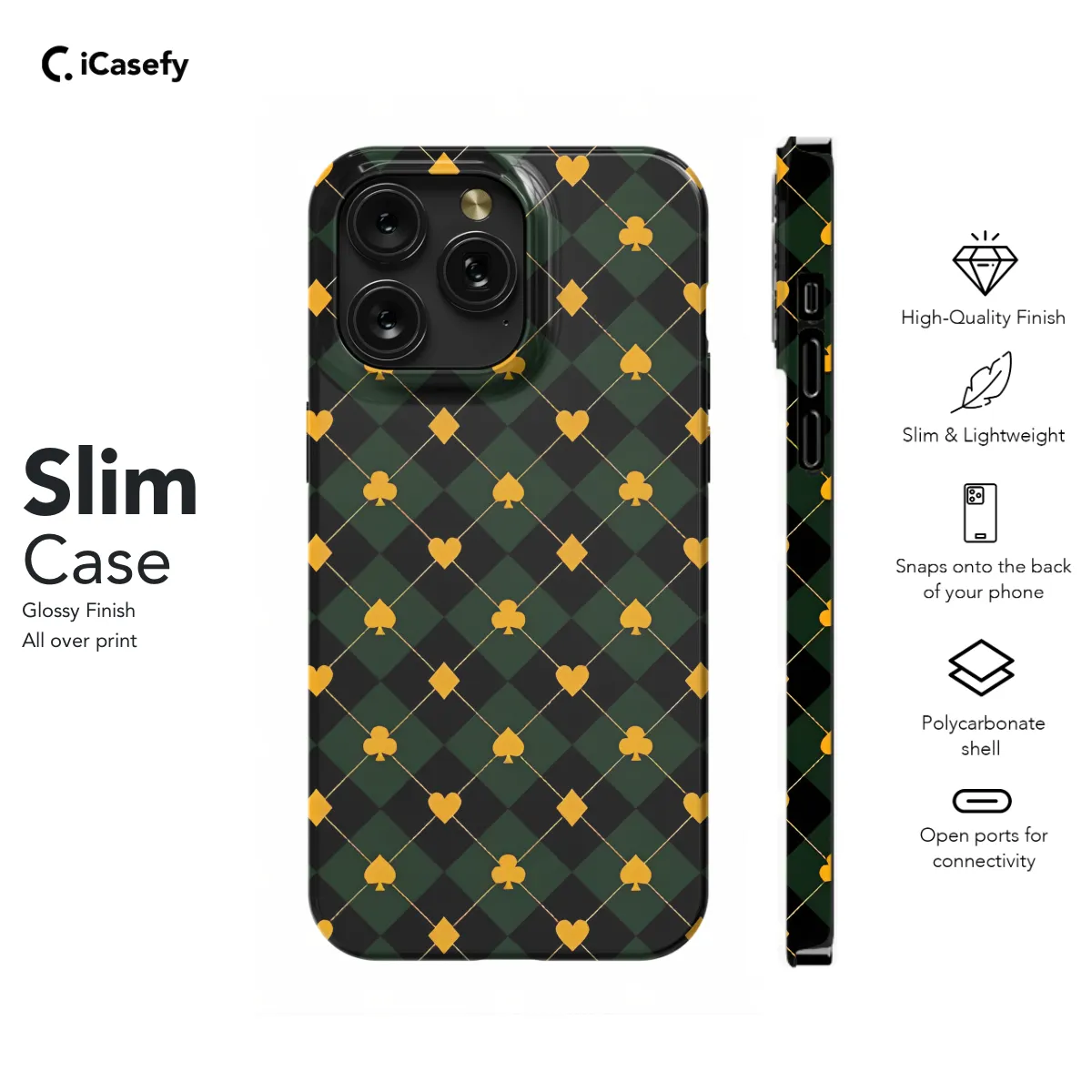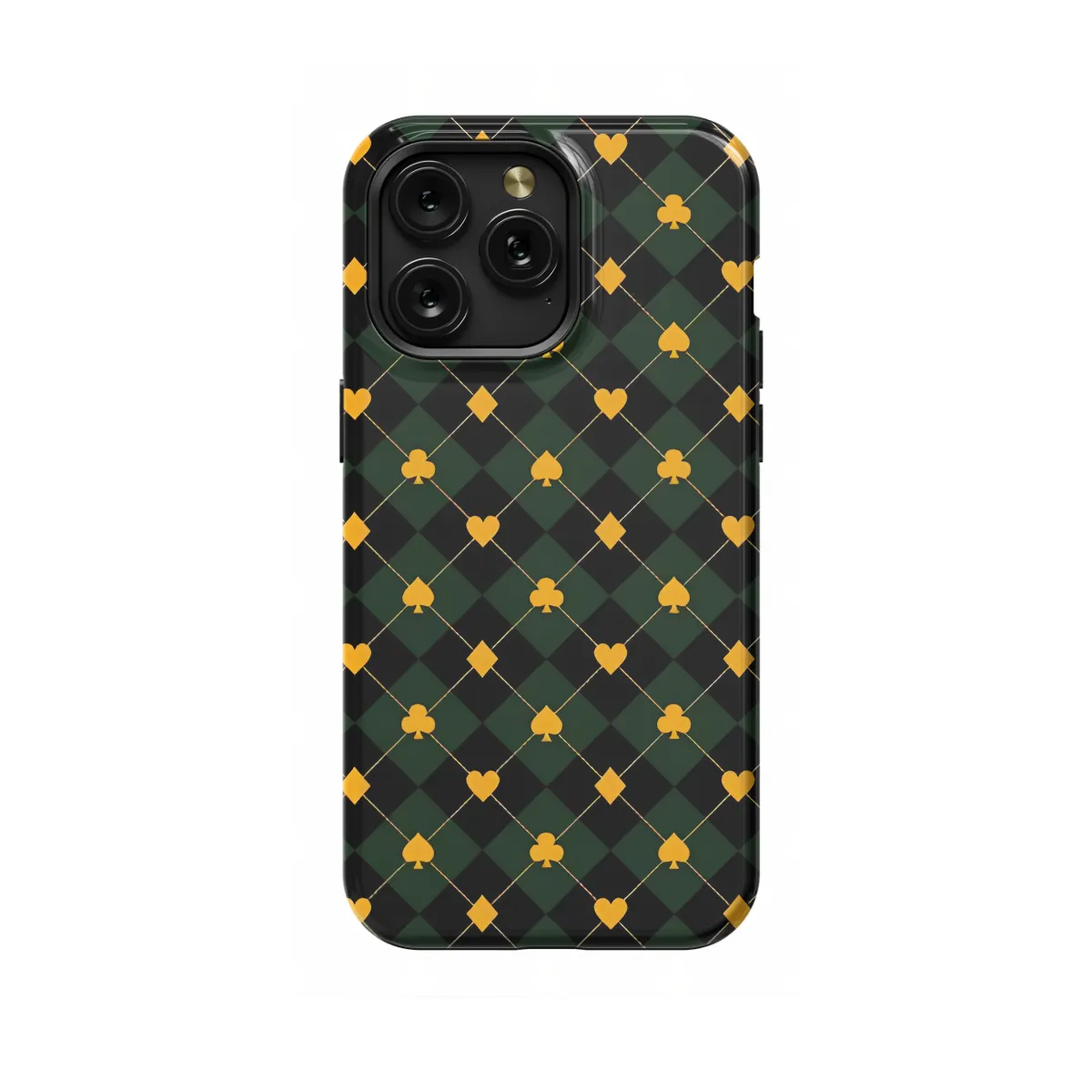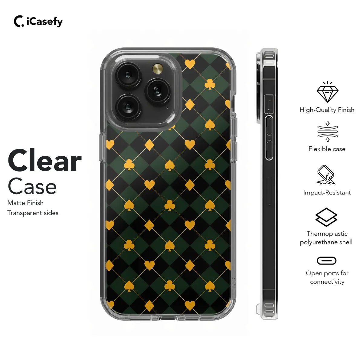 Protect your phone with style with our Playing Card Suit Phone Case. This sleek case features a classic playing card suit design on a durable TPU material that absorbs shocks and protects your device from scratches. Choose from the four classic suits: hearts, diamonds, clubs, or spades, to match your personality or favorite game. The case is compatible with iPhone, Samsung, and Pixel devices, providing a snug fit and easy access to all ports and buttons. Keep your phone safe and fashionable with our Playing Card Suit Phone Case.