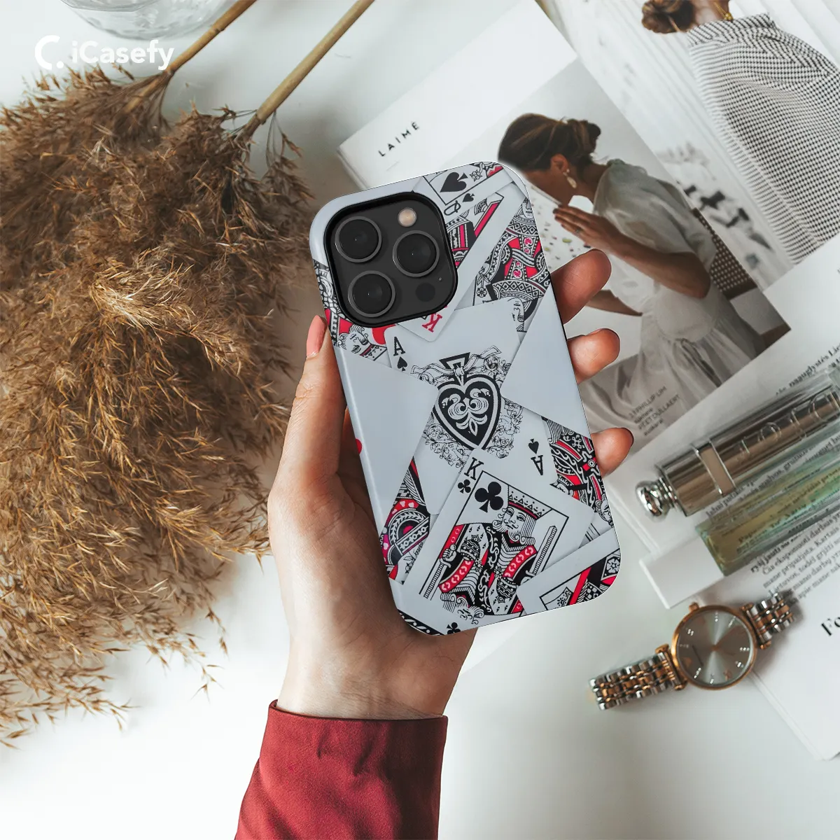 Step into a world of gaming elegance with our Playing Card Suit Phone Case! Perfectly tailored for your iPhone, Samsung, or Pixel, this case combines style and protection. Imagine the thrill of holding a royal flush right in your hand. This case features the classic symbols of hearts, diamonds, clubs, and spades, adding a touch of sophistication to your phone. Not only is this case a fashion statement, but it also safeguards your precious device from scratches, bumps, and drops. Its durable material ensures your phone stays protected while you navigate through daily life. Join the ranks of gaming enthusiasts and express your love for cards with our Playing Card Suit Phone Case. It's the perfect accessory for a night of poker with friends or simply enjoying a game on the go.