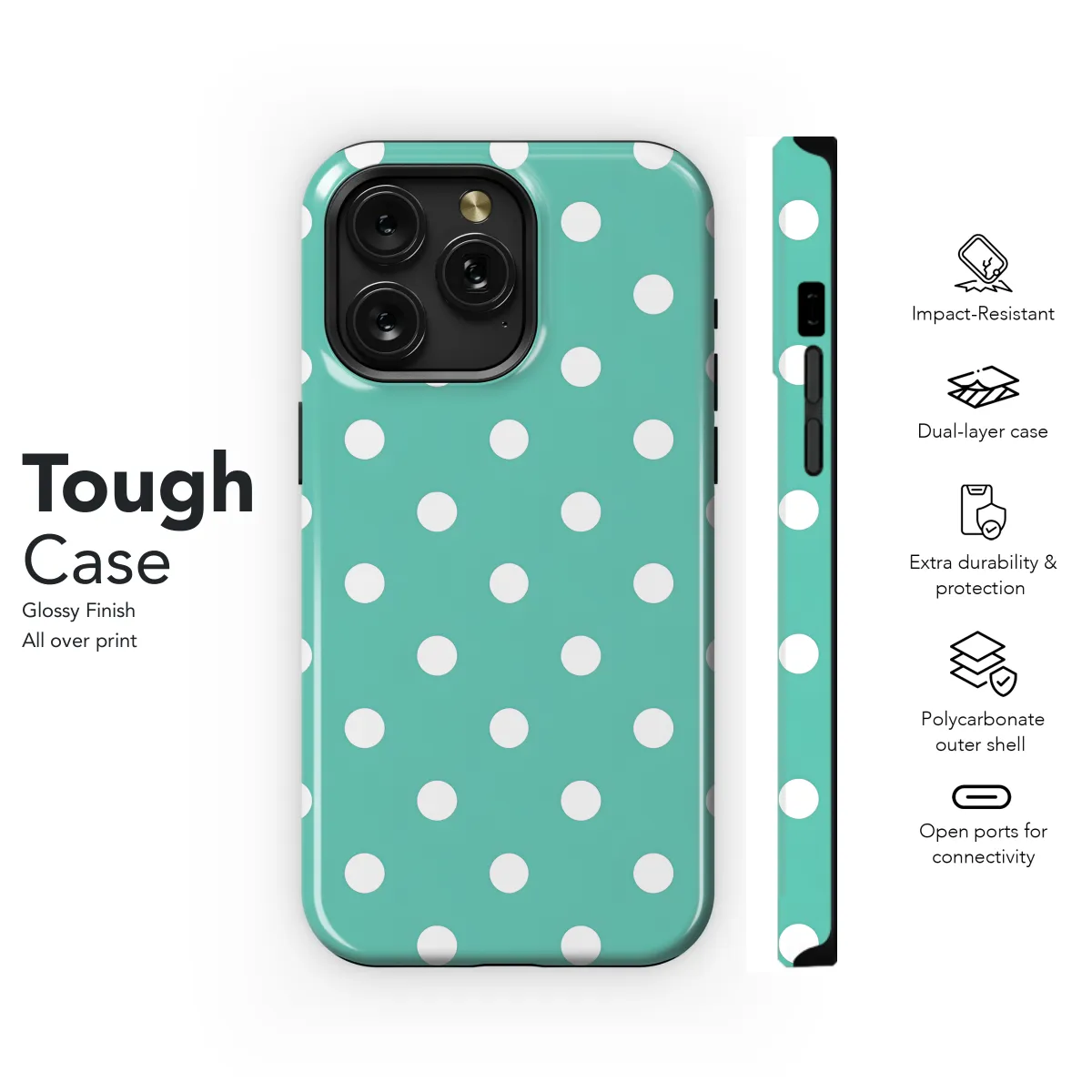 Protect your phone with style with this polka dot phone case. The vibrant green color and playful pattern will add a touch of fun to your device. Made from durable materials, this case will keep your phone safe from scratches and bumps. Designed to fit iPhone, Samsung, and Pixel devices, this case is the perfect way to keep your phone looking its best.