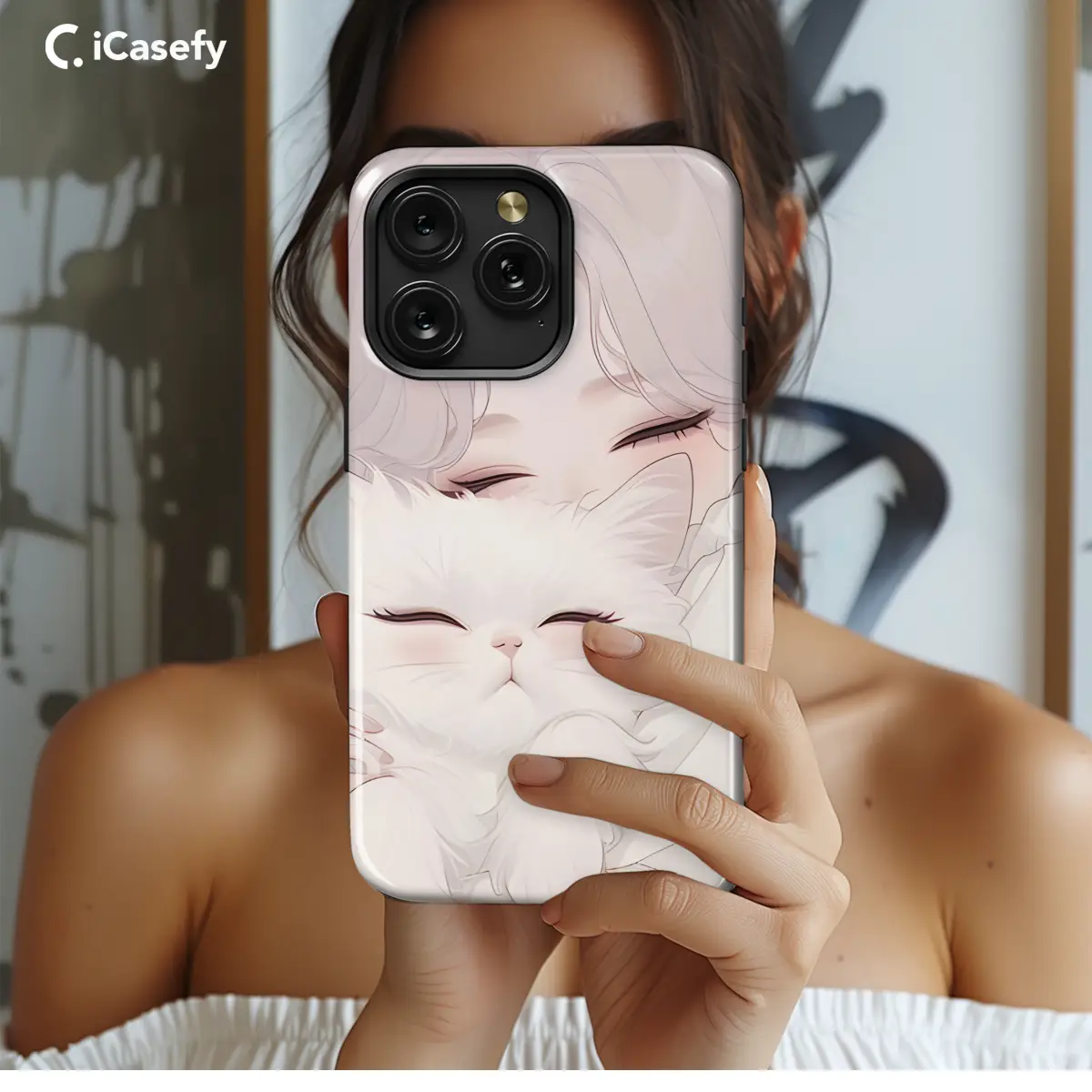 Immerse yourself in the captivating artistry of this enchanting portrait. The vibrant image of a blonde girl and her adorable white cat adorns this phone case, transforming your device into a masterpiece. With its high-quality construction, this case not only protects your phone but also adds a touch of whimsical charm to your everyday carry. Available for a wide range of iPhone, Samsung, and Pixel models, this case is a perfect choice for those who seek beauty and functionality in their tech accessories.