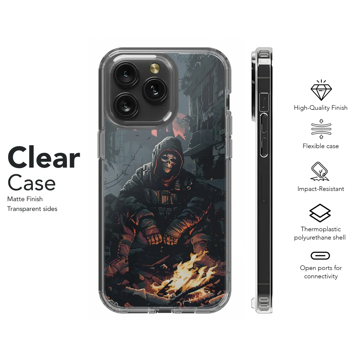 Wrap your device in the gritty beauty of a post-apocalyptic landscape. This striking design features a hooded figure, their skull-like mask illuminated by the flickering flames of a campfire in a desolate, ruined city. The pixel art style lends a unique, nostalgic vibe to this powerful image, perfect for those who appreciate dark fantasy, survival aesthetics, and a touch of the macabre. The detailed artwork captures the harshness of the environment, the lone figure's resilience, and the subtle warmth of the fire, creating a captivating visual narrative. This vibrant print brings a layer of depth and intrigue to your personal technology, transforming it into a statement piece reflecting a bold and individualistic style. The design is printed using high-quality inks, ensuring vibrant colors and long-lasting durability. Show off your appreciation for captivating art and unique designs with this exceptional accessory. This piece is a conversation starter, a visual testament to the enduring spirit of humanity even amidst devastation. It's the perfect gift for fans of video games, dystopian fiction, or anyone seeking a darkly beautiful addition to their personal style.