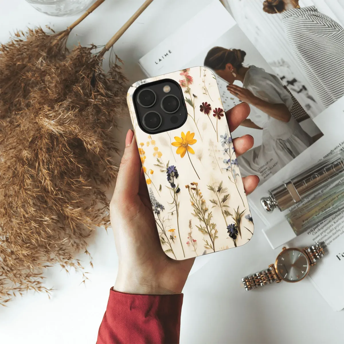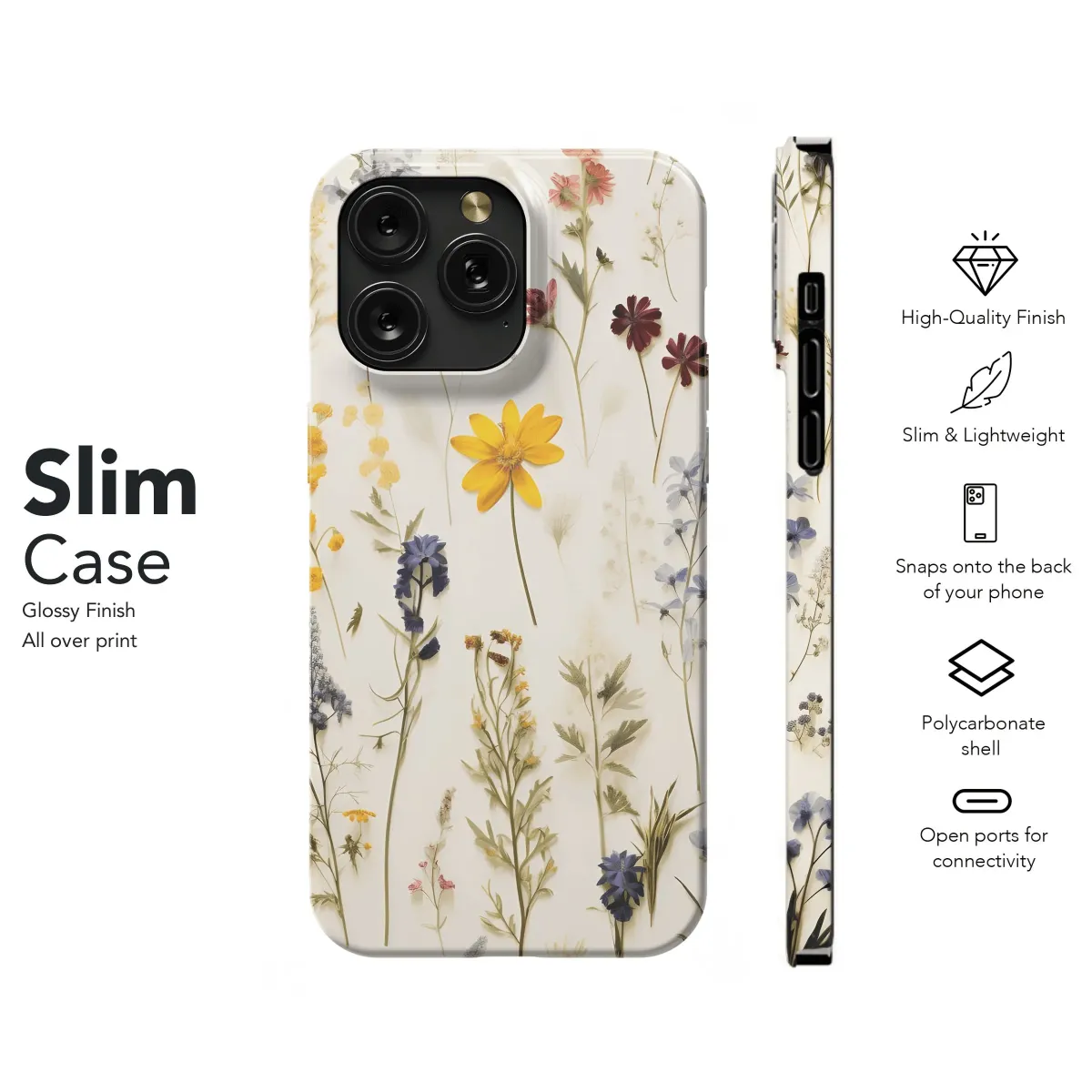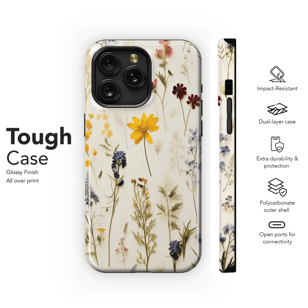 Real pressed flowers preserved in resin. Unique floral design. Durable protection for your iPhone, Samsung, or Pixel. Showcase nature's beauty!