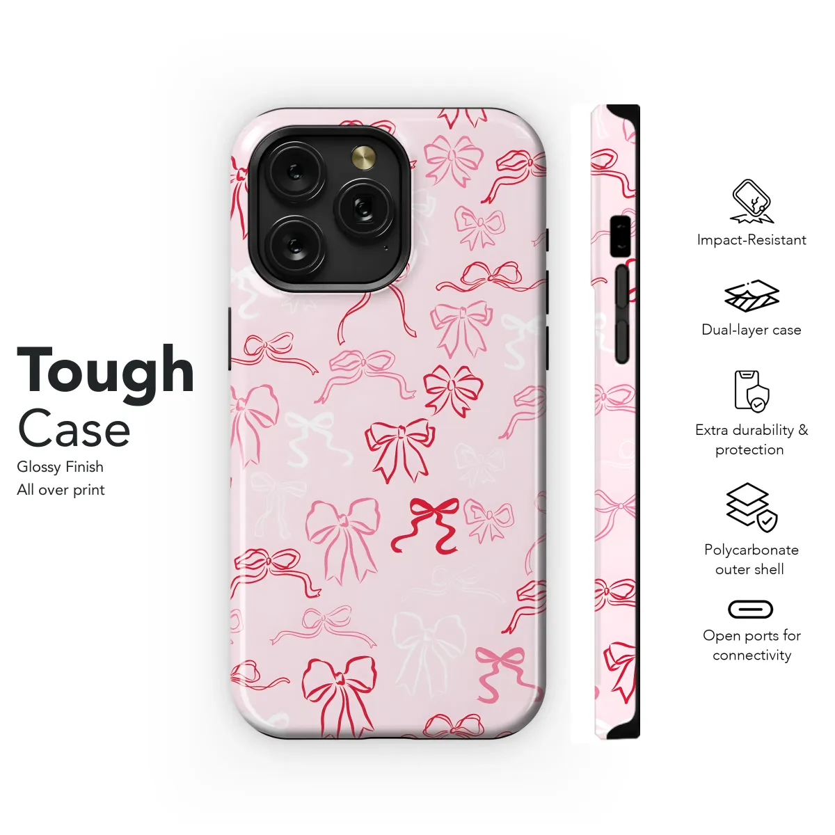 Add a touch of elegance and whimsy to your everyday essentials with this delightful design. Featuring a charming array of ribbons and bows in soft pinks and vibrant reds, this print exudes a feminine and festive spirit. The delicate lines and graceful curves create a visually appealing pattern, perfect for expressing your unique style. This design is professionally printed for vibrant colors and long-lasting quality, ensuring your accessory remains stylish and eye-catching. The versatile design seamlessly complements various outfits and personal aesthetics. It's a perfect gift for yourself or a loved one, bringing a splash of joy and sophistication to any occasion. Its lightweight feel ensures comfortable daily use, and the durable print resists scratches and fading. Embrace a touch of playful sophistication with this enchanting design, making a subtle yet impactful statement wherever you go. This print adds a delicate touch of romance and charm, suitable for individuals who appreciate artistry and detail. The repetitive motif adds a modern touch without being overwhelming, enhancing your look with subtle elegance. Stand out from the crowd with this unique, beautiful, and functional accessory that radiates charm and style. This delightful design adds a touch of fun and femininity to your everyday routine, while maintaining a level of sophistication that elevates your personal style.