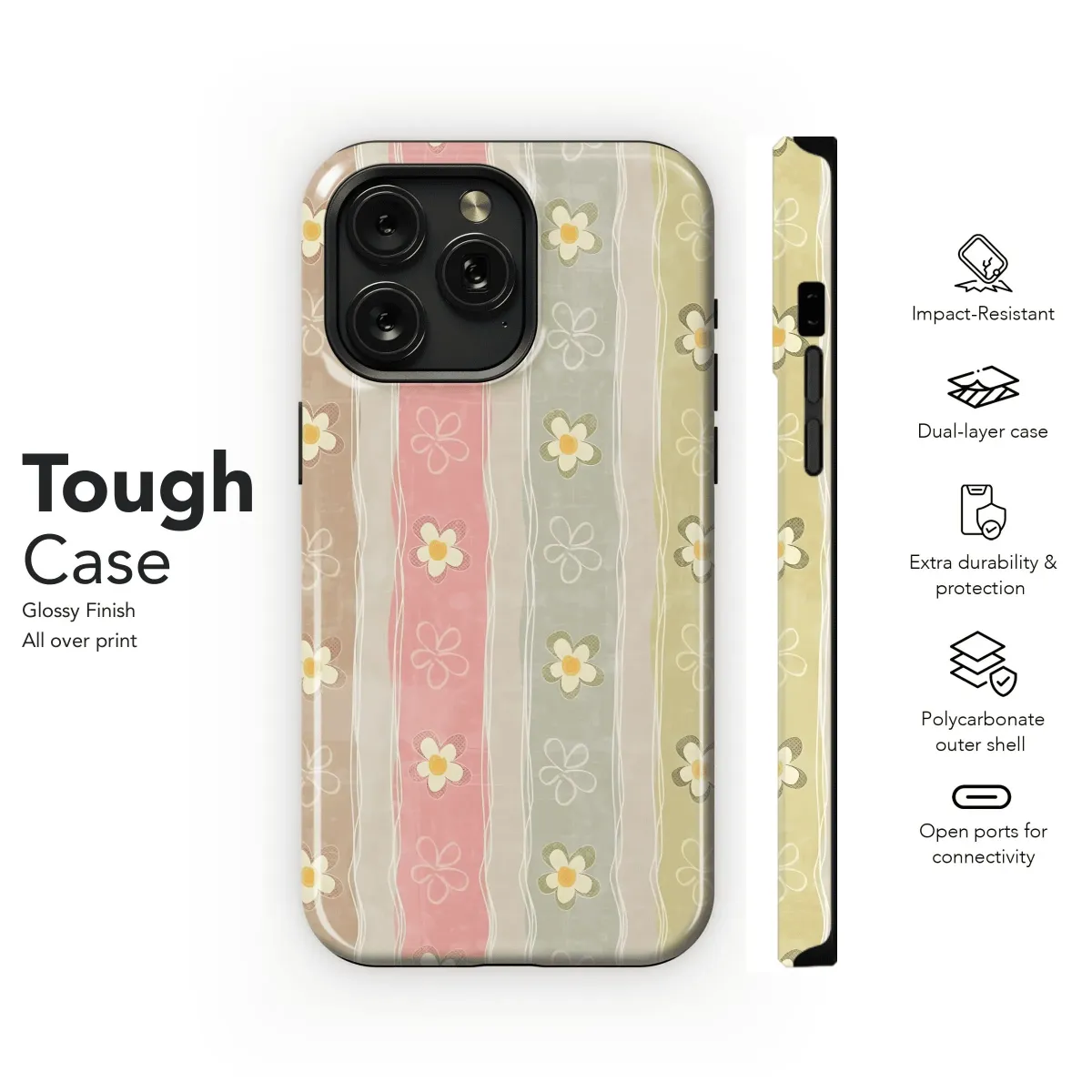 Protect your phone with this stylish and durable phone case. The Pretty Daisy Stripes design is perfect for adding a touch of personality to your device, and the sturdy construction will keep your phone safe from bumps and scratches. The case is also easy to install and remove, so you can change it up whenever you want.