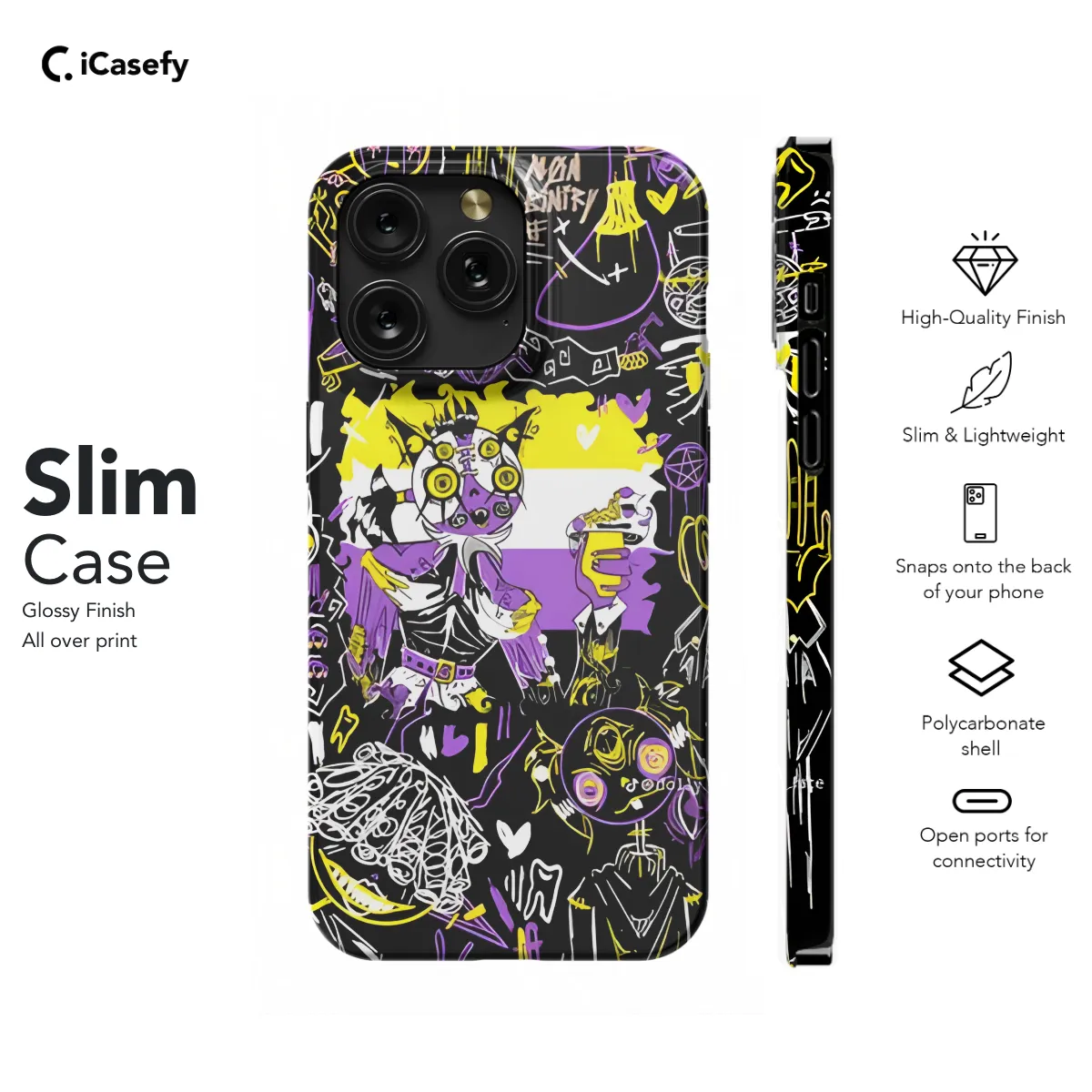 Embrace your dark and enigmatic style with our Pride Gothic Aesthetic Phone Case. Designed for iPhone, Samsung, and Pixel models, this case exhibits a captivating fusion of edgy gothic aesthetics and vibrant LGBTQ+ pride. Its sleek black exterior is adorned with intricate lace-like patterns and symbolic imagery, creating a hauntingly beautiful statement. The vibrant hues of the rainbow flag proudly embrace diversity and empower your expression. Crafted from durable materials, this case safeguards your phone from everyday wear and tear while showcasing your unique personality. Whether you're a free spirit, a lover of the macabre, or simply embracing your own brand of individuality, this phone case empowers you to standout and be seen.