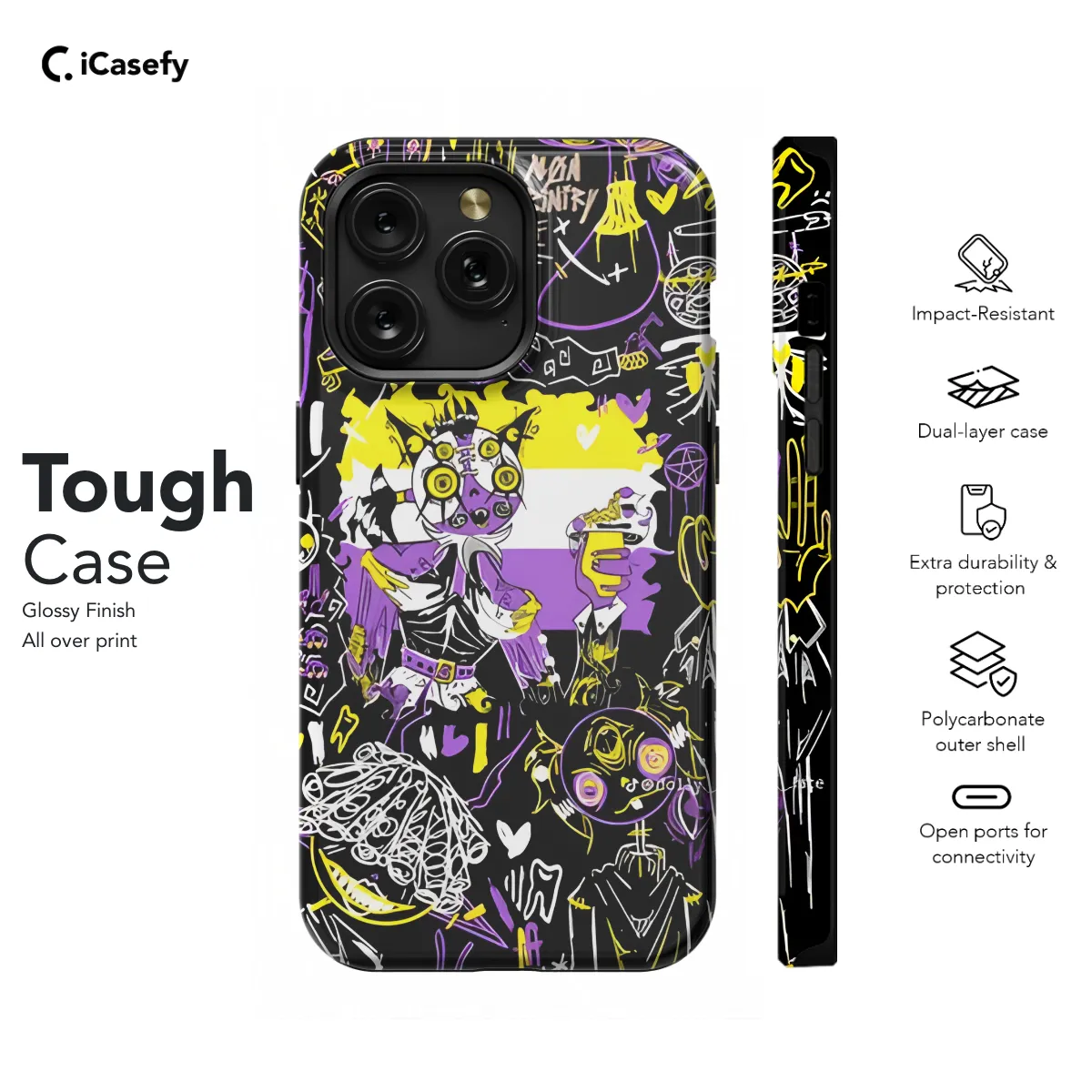 Embrace your dark and enigmatic style with our Pride Gothic Aesthetic Phone Case. Designed for iPhone, Samsung, and Pixel models, this case exhibits a captivating fusion of edgy gothic aesthetics and vibrant LGBTQ+ pride. Its sleek black exterior is adorned with intricate lace-like patterns and symbolic imagery, creating a hauntingly beautiful statement. The vibrant hues of the rainbow flag proudly embrace diversity and empower your expression. Crafted from durable materials, this case safeguards your phone from everyday wear and tear while showcasing your unique personality. Whether you're a free spirit, a lover of the macabre, or simply embracing your own brand of individuality, this phone case empowers you to standout and be seen.