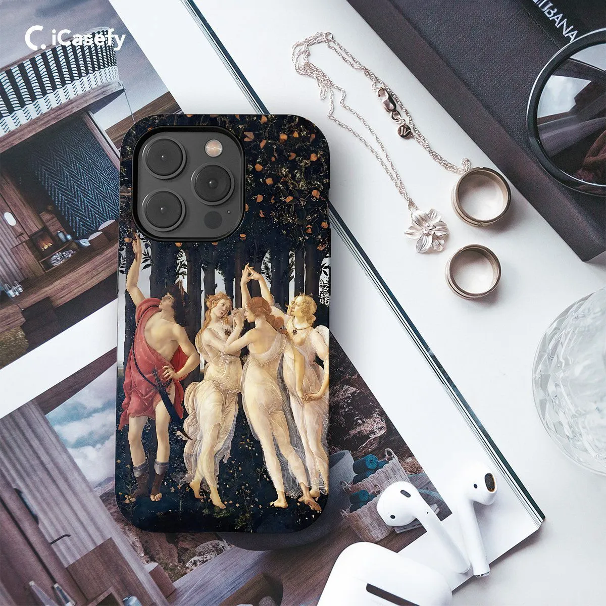 Immerse yourself in the timeless beauty of the Renaissance with this captivating phone case featuring "Primavera" by Sandro Botticelli. Adorned with the iconic figures of Venus, the Three Graces, and Mercury, this accessory celebrates the enchanting symbolism and exquisite craftsmanship of Botticelli's masterpiece. Carry a touch of art history with you wherever you go, letting your device become a canvas for the beauty and elegance of the Renaissance era with this mesmerizing accessory.
