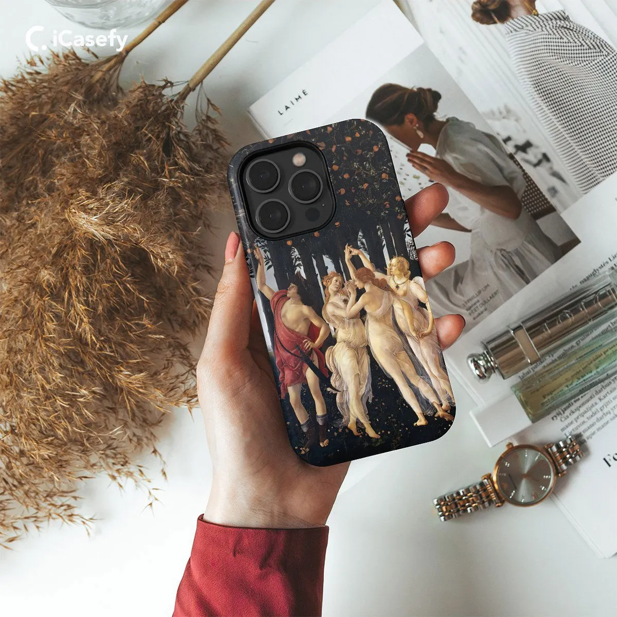 Immerse yourself in the timeless beauty of the Renaissance with this captivating phone case featuring "Primavera" by Sandro Botticelli. Adorned with the iconic figures of Venus, the Three Graces, and Mercury, this accessory celebrates the enchanting symbolism and exquisite craftsmanship of Botticelli's masterpiece. Carry a touch of art history with you wherever you go, letting your device become a canvas for the beauty and elegance of the Renaissance era with this mesmerizing accessory.