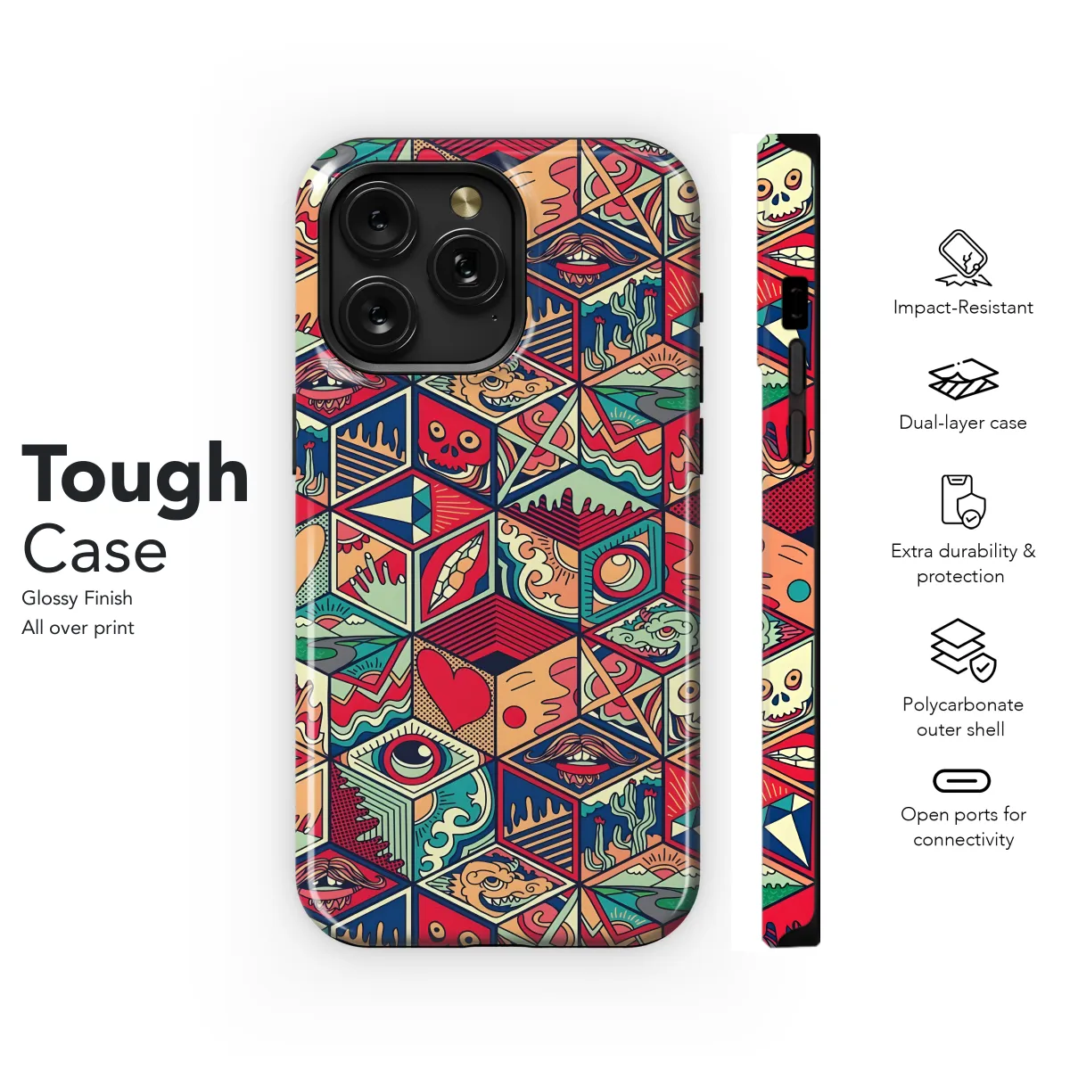 Dive into a world of vibrant hues and enigmatic patterns with this captivating Psychedelic Cube Pattern phone case. Each case is adorned with an intricate cube design, creating a mesmerizing visual journey that transcends the boundaries of ordinary phone accessories. The kaleidoscopic colors and geometric precision ignite your imagination, transporting you to a realm of boundless creativity. Available for a wide range of iPhone, Samsung, and Pixel models, this case not only protects your device but also transforms it into a statement piece. Its premium materials ensure durability and a snug fit, while the unique Psychedelic Cube Pattern adds a touch of whimsy and individuality. Whether you're navigating the urban jungle or embracing the bohemian spirit, this phone case will elevate your style and make a bold fashion statement wherever you go.