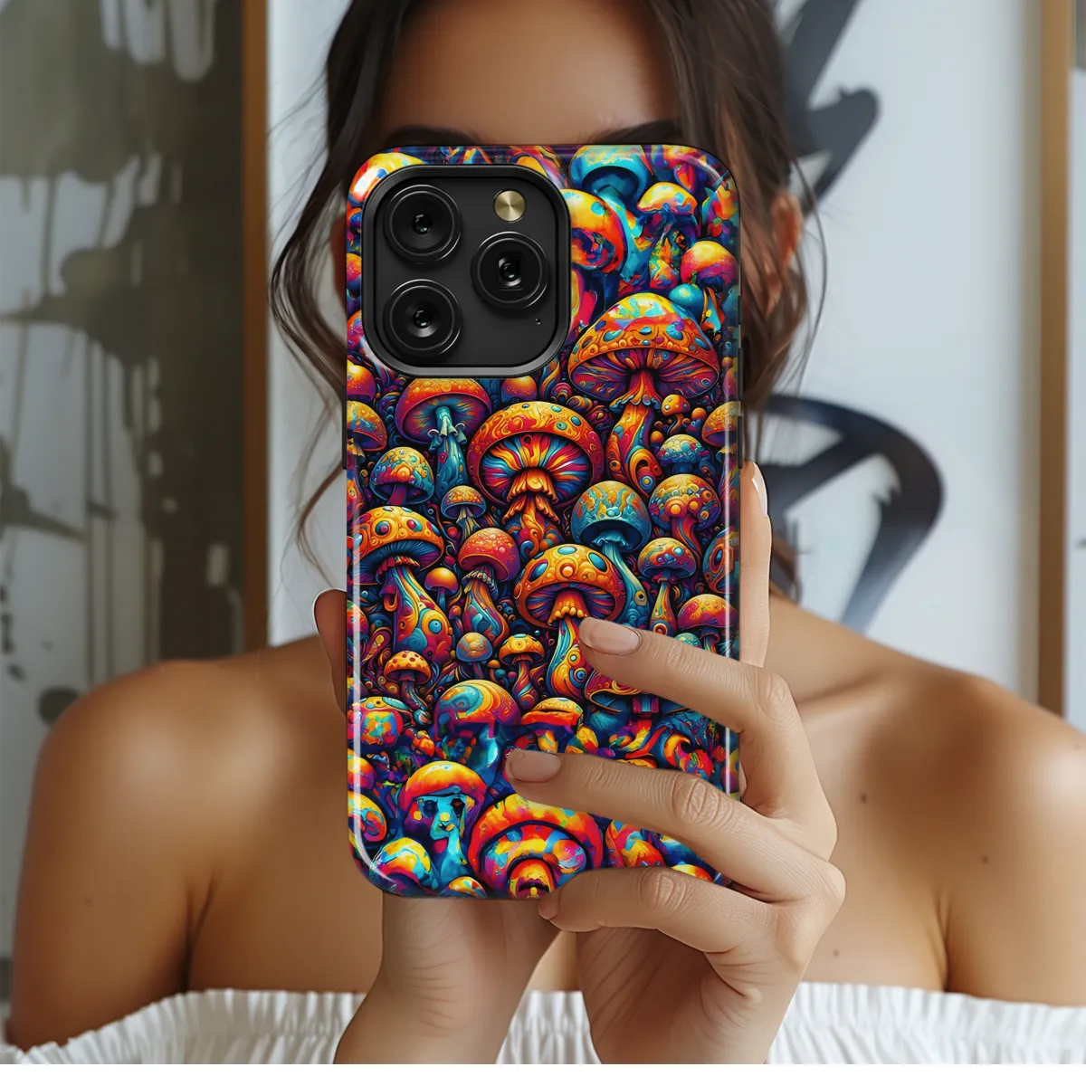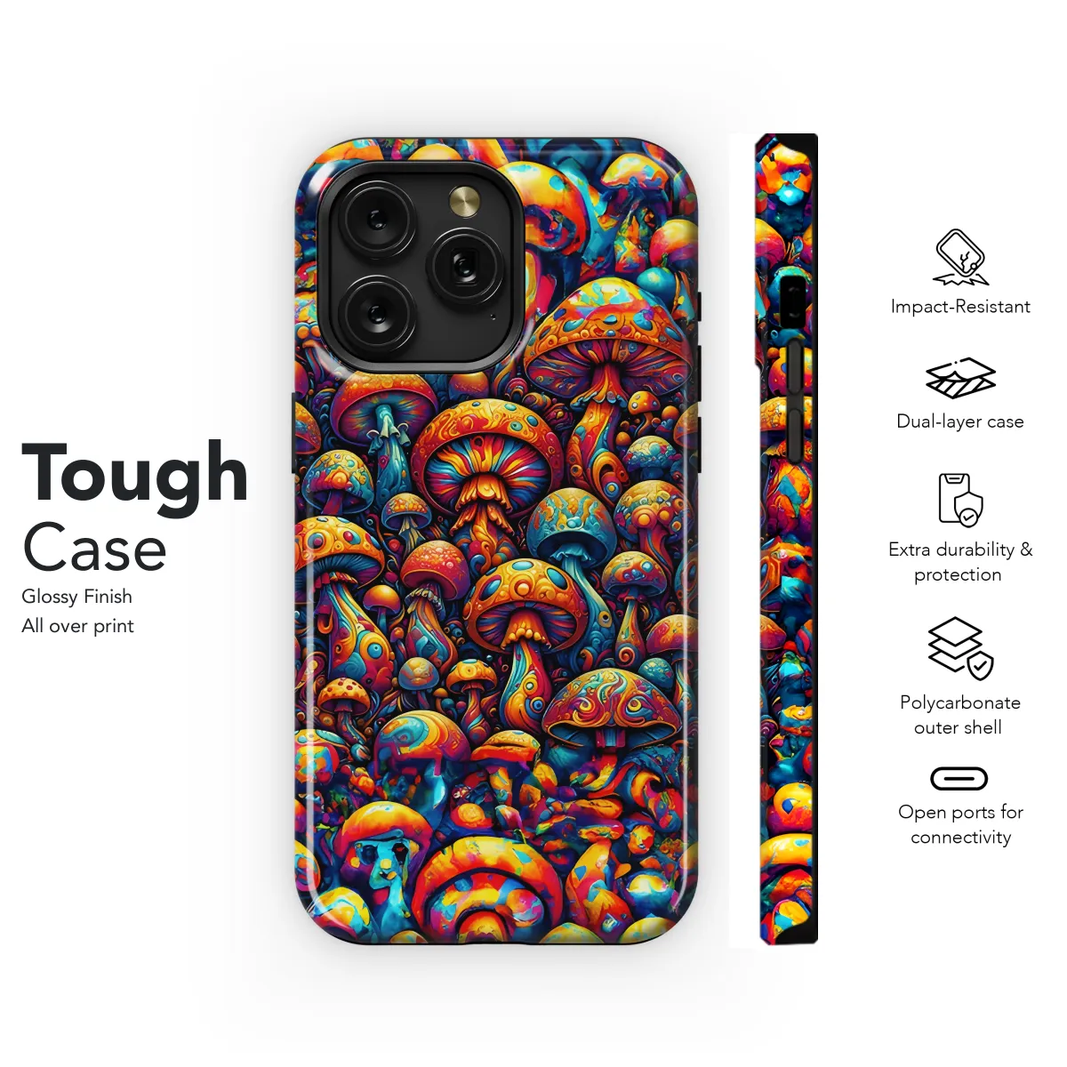 Embark on a surreal journey with this mesmerizing psychedelic mushrooms phone case. Adorned with vibrant hues and intricate patterns, it's a cosmic spectacle that will ignite your imagination. Protect your device with style and embrace the ethereal realm of psychedelic art every time you reach for your phone.