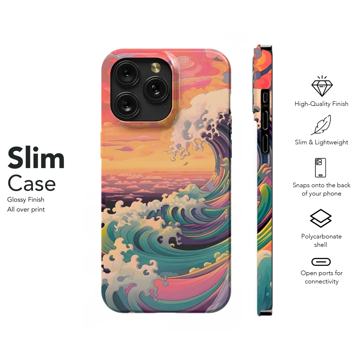 Embrace the vibrant energy of this captivating design, a swirling masterpiece of ocean waves crashing beneath a sunset sky. The rich, saturated colors and stylized wave patterns create a mesmerizing visual experience, perfect for adding a touch of artistic flair to your everyday life. This print showcases a unique blend of traditional Japanese art influences with a modern, psychedelic twist, resulting in a piece that's both timeless and contemporary. Its dynamic composition and bold color palette are guaranteed to turn heads and spark conversation. The detailed rendering of the waves and the fiery sunset backdrop evokes a feeling of powerful serenity, making it a striking and memorable addition to your personal style. This high-quality print is designed to last, offering a vivid and long-lasting image that will withstand daily use. Transform your accessory into a canvas of artistic expression with this one-of-a-kind design; add a touch of wave power to your look. Its versatility makes it a superb gift for art lovers, ocean enthusiasts, or anyone who appreciates bold, unique style. Shop now and bring the beauty of the ocean sunset to your world.