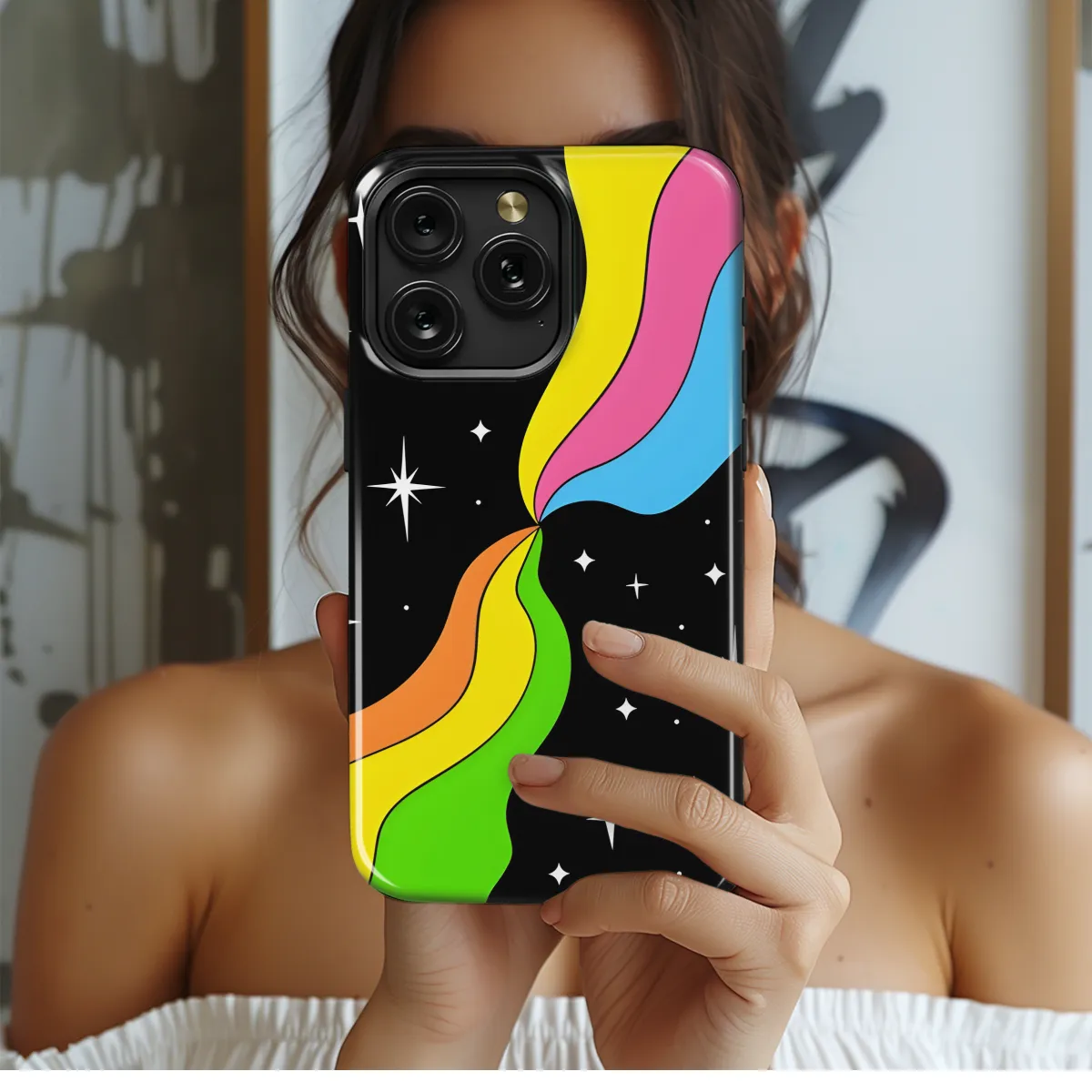 Step into the vibrant abyss of the Psychedelic Space Y2K Phone Case. Adorned with swirling nebulas, cosmic constellations, and shimmering stars, this case transports you to the ethereal realm of the early 2000s. Protect your smartphone while embracing the futuristic nostalgia of Y2K aesthetics. Its sleek design and durable construction ensure both style and safety, making it the perfect accessory for tech-savvy stargazers and cosmic adventurers.