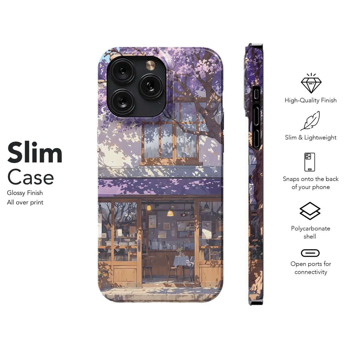 Purple Tree Cafe phone case. Stylish protection for your iPhone, Samsung, or Pixel. Durable & unique. Get yours today!