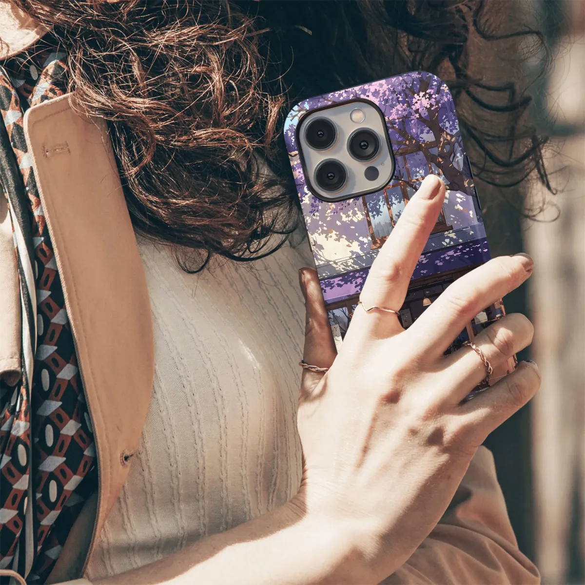 Purple Tree Cafe phone case. Stylish protection for your iPhone, Samsung, or Pixel. Durable & unique. Get yours today!