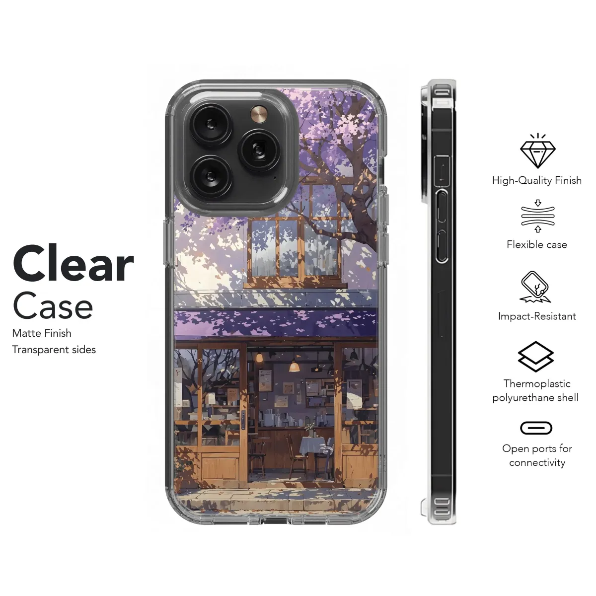 Purple Tree Cafe phone case. Stylish protection for your iPhone, Samsung, or Pixel. Durable & unique. Get yours today!