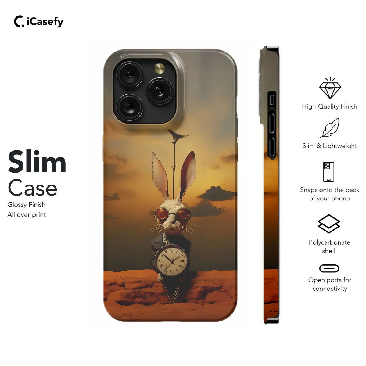 Immerse yourself in the whimsical world of Salvador Dali with a captivating phone case featuring a surreal rabbit motif. Inspired by Dali's iconic artworks, this accessory merges surrealism with playful charm, evoking curiosity and intrigue. Carry a touch of artistic genius with you wherever you go, letting your device become a canvas for creativity and style with this enchanting Dali-inspired rabbit case.