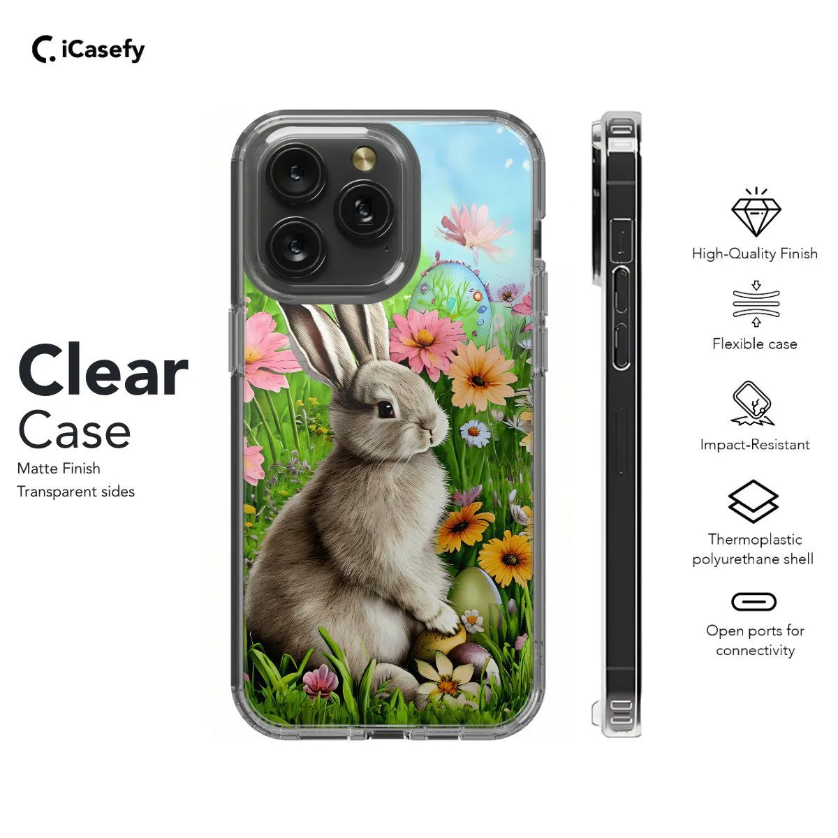 Celebrate the joy of spring with our Rabbit Eggs phone case. This delightful design features a charming rabbit surrounded by colorful Easter eggs, radiating the festive spirit of the season. Crafted for both style and protection, it offers precise cutouts for easy access to ports and buttons. Let this accessory be a reminder of the renewal and joy that springtime brings.