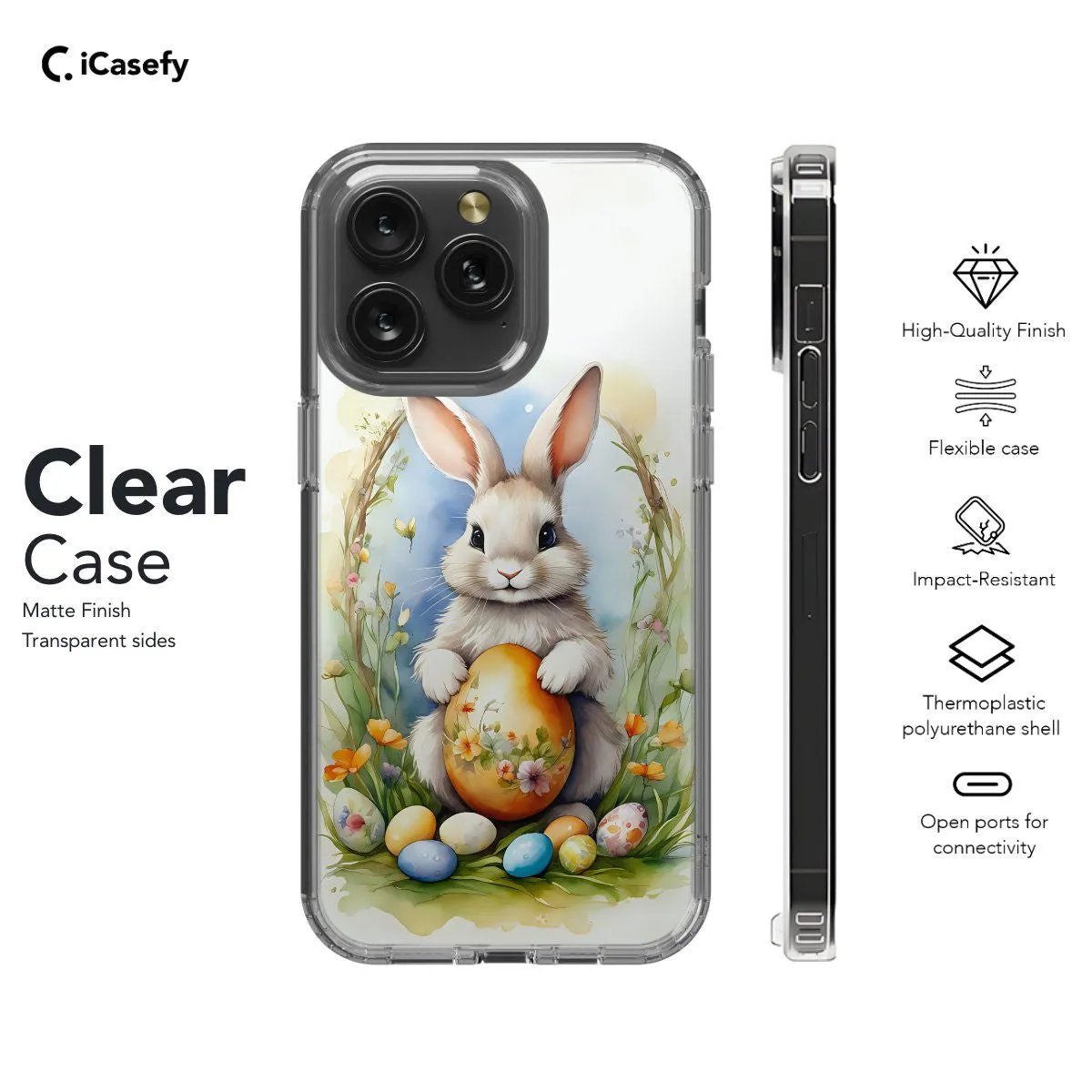 Celebrate the joy of spring with our Rabbit Eggs phone case. This delightful design features a charming rabbit surrounded by colorful Easter eggs, radiating the festive spirit of the season. Crafted for both style and protection, it offers precise cutouts for easy access to ports and buttons. Let this accessory be a reminder of the renewal and joy that springtime brings.
