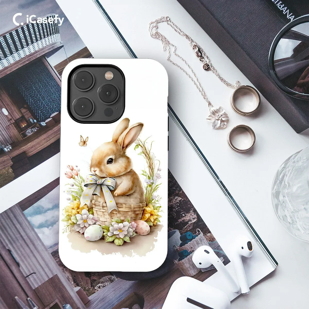 Celebrate the joy of spring with our Rabbit Eggs phone case. This delightful design features a charming rabbit surrounded by colorful Easter eggs, radiating the festive spirit of the season. Crafted for both style and protection, it offers precise cutouts for easy access to ports and buttons. Let this accessory be a reminder of the renewal and joy that springtime brings.