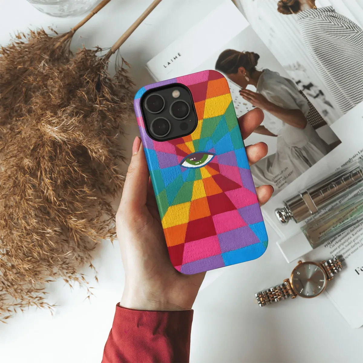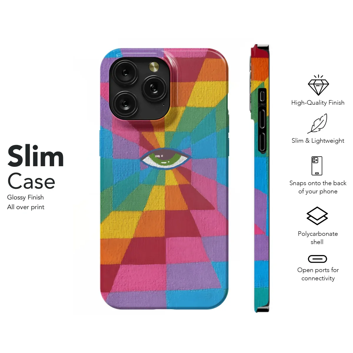 Mesmerizing rainbow eye design. Protect your iPhone, Samsung, or Pixel with this unique, illusion phone case. Stand out from the crowd!