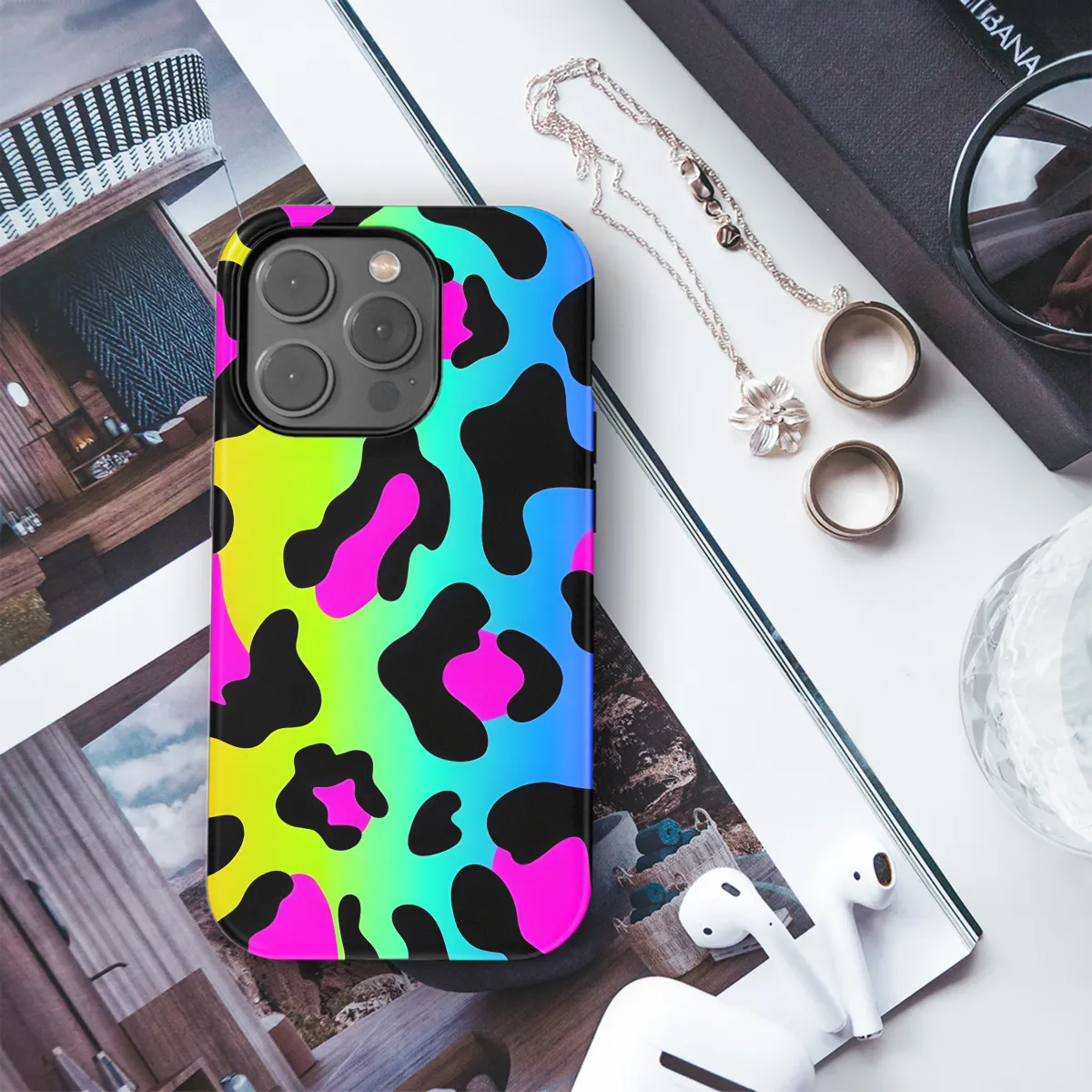 Indulge in the vibrant fusion of a rainbow and leopard print adorned on your phone case. This captivating cover not only protects your device but also adds a touch of wild yet whimsical style. With its sleek design, effortless fit, and eye-catching pattern, this case transforms your phone into a statement piece that demands attention. Embrace the spirit of the animal kingdom while celebrating a kaleidoscope of colors with our Rainbow Leopard Phone Case, available for a range of iPhone, Samsung, and Pixel models.