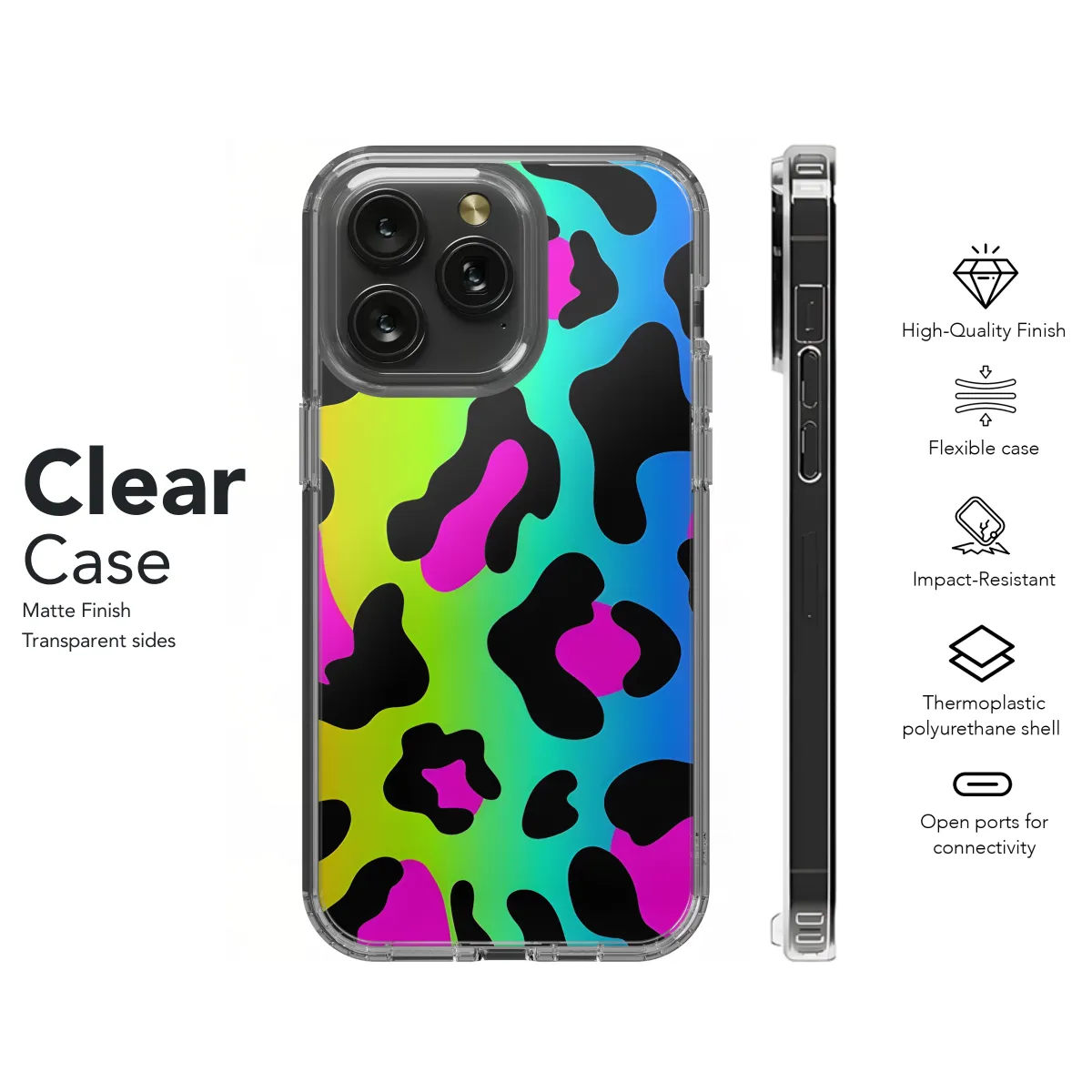 Indulge in the vibrant fusion of a rainbow and leopard print adorned on your phone case. This captivating cover not only protects your device but also adds a touch of wild yet whimsical style. With its sleek design, effortless fit, and eye-catching pattern, this case transforms your phone into a statement piece that demands attention. Embrace the spirit of the animal kingdom while celebrating a kaleidoscope of colors with our Rainbow Leopard Phone Case, available for a range of iPhone, Samsung, and Pixel models.