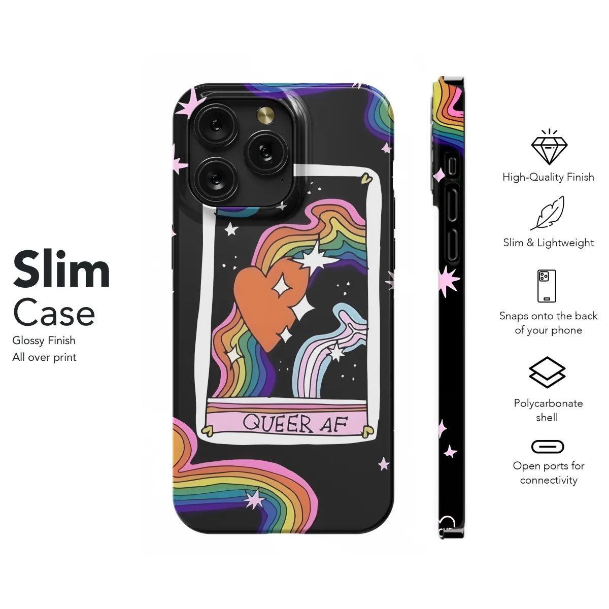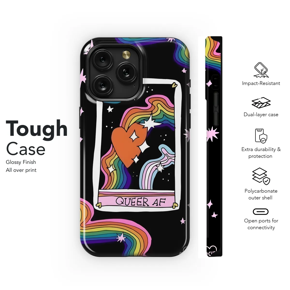 Express your pride and love with this vibrant Rainbow Queer Heart phone case! Designed to fit both iPhone and Samsung models, as well as the Pixel 4234, it adds a touch of color and personality to your device. The durable case protects your phone from scratches and bumps, while the eye-catching rainbow heart design shows off your support for the LGBTQ+ community.