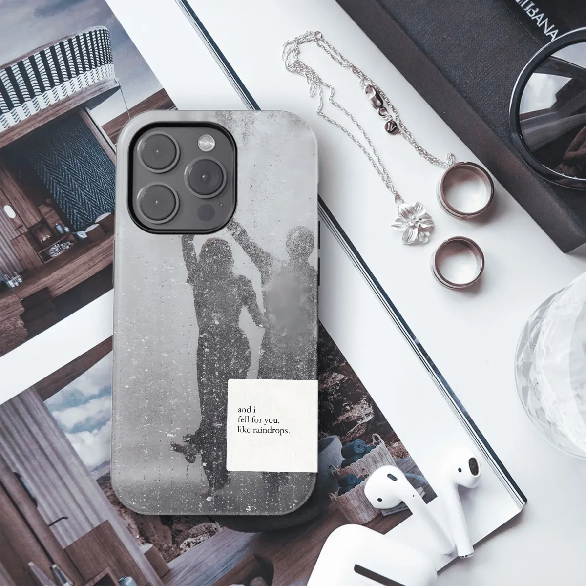 Embrace the romance of rainy days with this dreamy phone case. Featuring delicate raindrop designs, this cover adds a touch of whimsy to your iPhone, Samsung, or Pixel. Protect your phone in style.