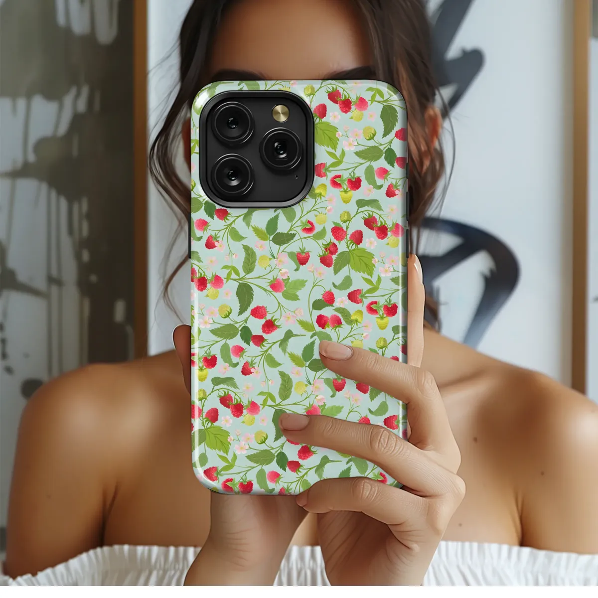 Adorn your device with this delightful raspberry design. This vibrant, hand-drawn illustration showcases ripe, juicy raspberries nestled amongst lush green leaves and delicate blossoms on a soft pastel background. The charming pattern evokes a sense of summer freshness and natural beauty, making it a perfect accessory for those who appreciate artistry and nature's elegance. This high-quality print ensures vivid colors and a long-lasting design that won't fade or peel. The detailed artwork features a captivating repeating motif, transforming your device into a miniature garden of deliciousness. Perfect for adding a touch of rustic charm or a pop of summery color to your everyday life, this design is certain to turn heads and start conversations. Its versatile aesthetic blends effortlessly with various styles, from casual to chic. Protect your device in style with this stunning, nature-inspired print. This unique and eye-catching design will make your device stand out from the crowd, reflecting your personal style and love for the beauty of the natural world. Order yours today and bring a taste of summer wherever you go!