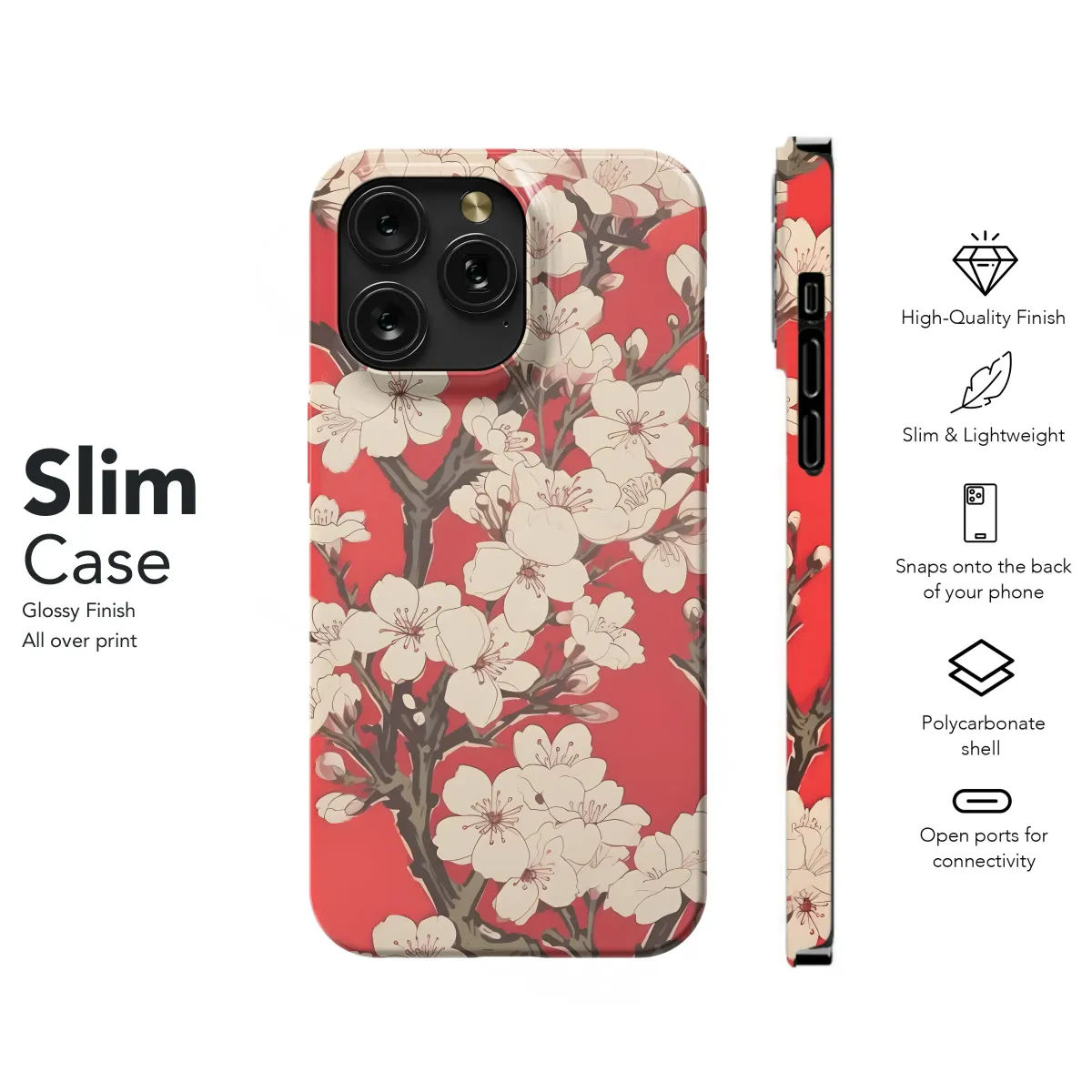 Adorn your device with this exquisite cherry blossom design. The delicate off-white blossoms contrast beautifully against a vibrant coral backdrop, creating a stunning visual that's both elegant and eye-catching. This artistic print showcases a detailed, almost vintage-inspired illustration of a blossoming branch, perfect for those who appreciate classic beauty with a modern edge. The rich color palette and intricate detailing make this a truly unique accessory, adding a touch of sophistication and personality to your everyday carry. This design is printed using high-quality inks for vibrant, long-lasting color that won't fade or peel. It’s a great gift idea for birthdays, holidays, or any special occasion, or a perfect self-treat to brighten your day. This meticulously crafted artwork offers a subtle yet powerful statement of style and is certain to turn heads wherever you go. Its captivating imagery will transform your device into a piece of wearable art. Embrace the beauty of nature with this stunning design and express your unique style. Available in various sizes and compatible with various models.