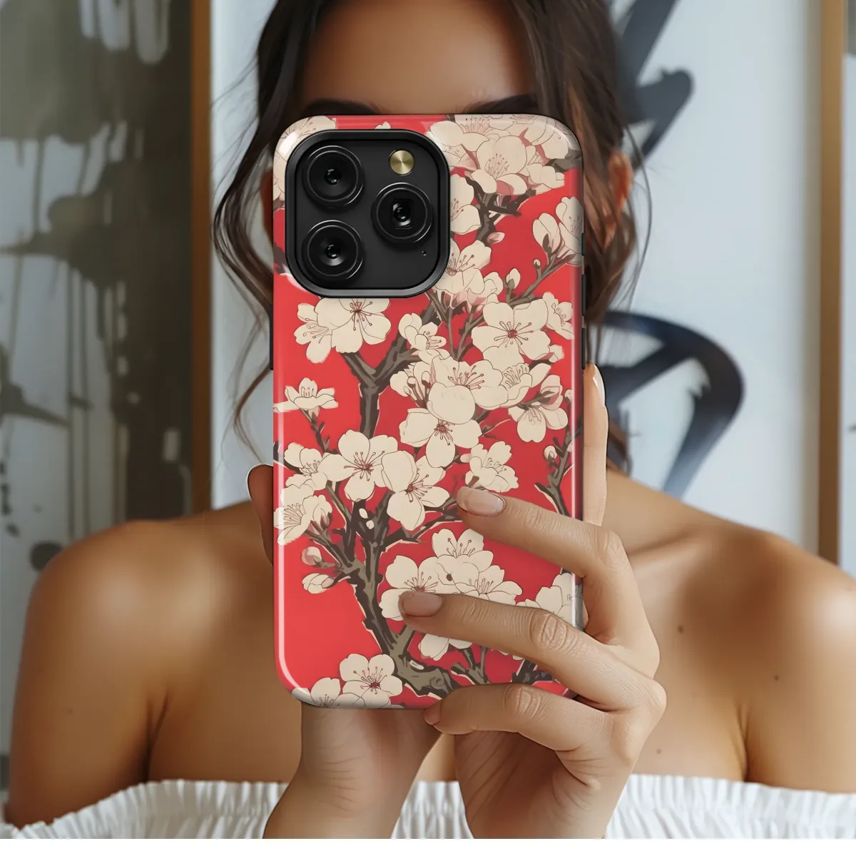 Adorn your device with this exquisite cherry blossom design. The delicate off-white blossoms contrast beautifully against a vibrant coral backdrop, creating a stunning visual that's both elegant and eye-catching. This artistic print showcases a detailed, almost vintage-inspired illustration of a blossoming branch, perfect for those who appreciate classic beauty with a modern edge. The rich color palette and intricate detailing make this a truly unique accessory, adding a touch of sophistication and personality to your everyday carry. This design is printed using high-quality inks for vibrant, long-lasting color that won't fade or peel. It’s a great gift idea for birthdays, holidays, or any special occasion, or a perfect self-treat to brighten your day. This meticulously crafted artwork offers a subtle yet powerful statement of style and is certain to turn heads wherever you go. Its captivating imagery will transform your device into a piece of wearable art. Embrace the beauty of nature with this stunning design and express your unique style. Available in various sizes and compatible with various models.