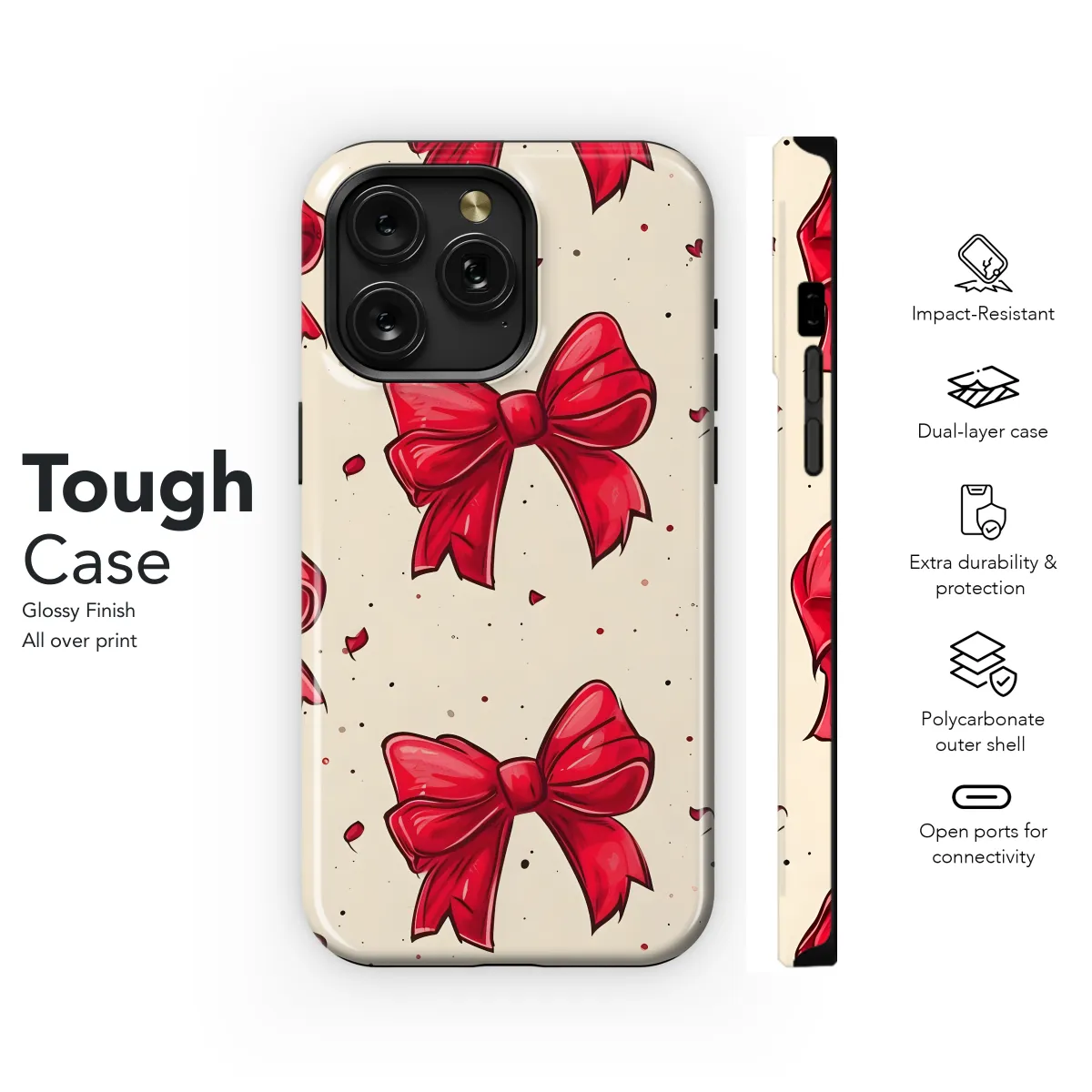 Protect your phone in style with our Red Bow Pattern Phone Case. This case features a striking red bow pattern on a durable TPU material, providing both protection and a touch of elegance. Its slim design ensures a perfect fit for your iPhone, Samsung, or Pixel smartphone, without adding bulk. The precise cutouts allow for easy access to all buttons, ports, and the camera. Keep your phone safe and elevate your style with our Red Bow Pattern Phone Case today!