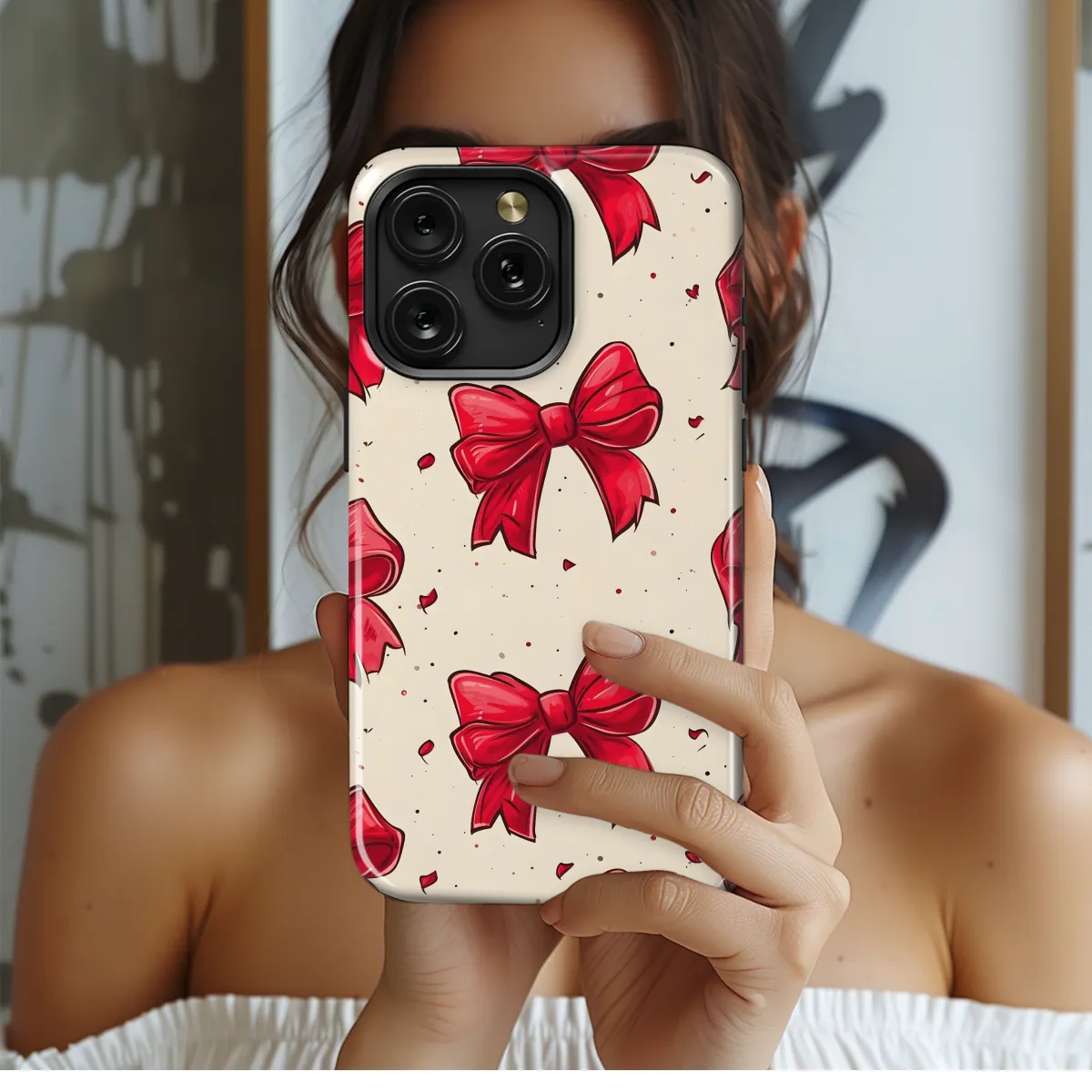 Protect your phone in style with our Red Bow Pattern Phone Case. This case features a striking red bow pattern on a durable TPU material, providing both protection and a touch of elegance. Its slim design ensures a perfect fit for your iPhone, Samsung, or Pixel smartphone, without adding bulk. The precise cutouts allow for easy access to all buttons, ports, and the camera. Keep your phone safe and elevate your style with our Red Bow Pattern Phone Case today!