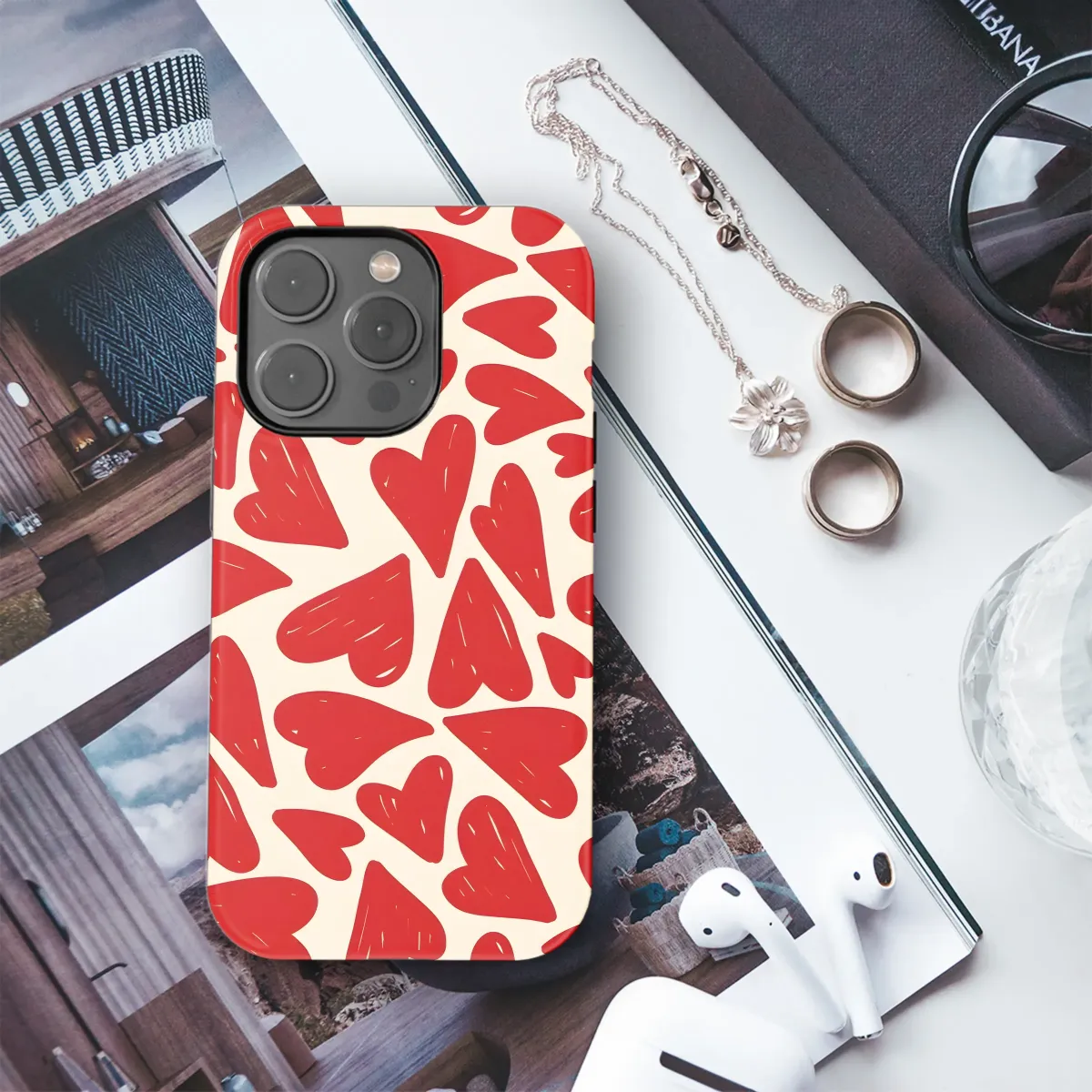 Show your love with this vibrant, hand-drawn heart design! This charming pattern features a playful array of red hearts on a creamy background, perfect for adding a touch of romance to your everyday life. The bold, expressive style is both modern and timeless, making it a versatile choice for expressing your unique personality. This high-quality print ensures crisp, vibrant colors that won't fade, guaranteeing lasting style and a delightful aesthetic. Its eye-catching design will turn heads, making it the perfect accessory to add a personal touch and a pop of color to your belongings. The design is easily customizable and looks great on various surfaces. Spread the love and express yourself with this fun and fashionable design; it's the ideal gift for yourself or a loved one, celebrating love and affection in a unique and stylish way. This design is printed using eco-friendly inks on durable materials, ensuring both style and sustainability. Add a dash of love and individuality to your world today! #hearts #love #redhearts #valentinesday #cute #romantic #design #pattern #fashion #accessories #personalized #gift #handmade