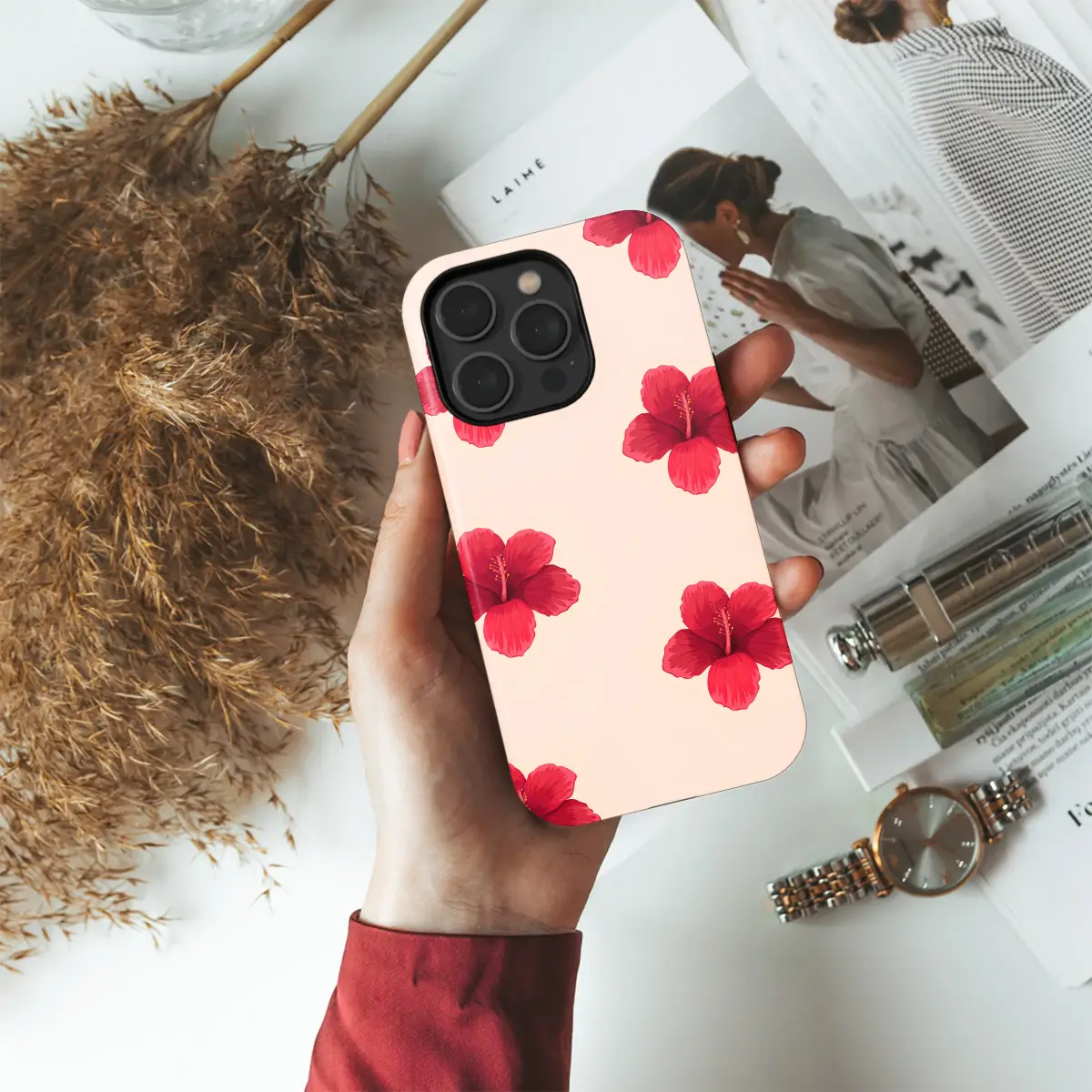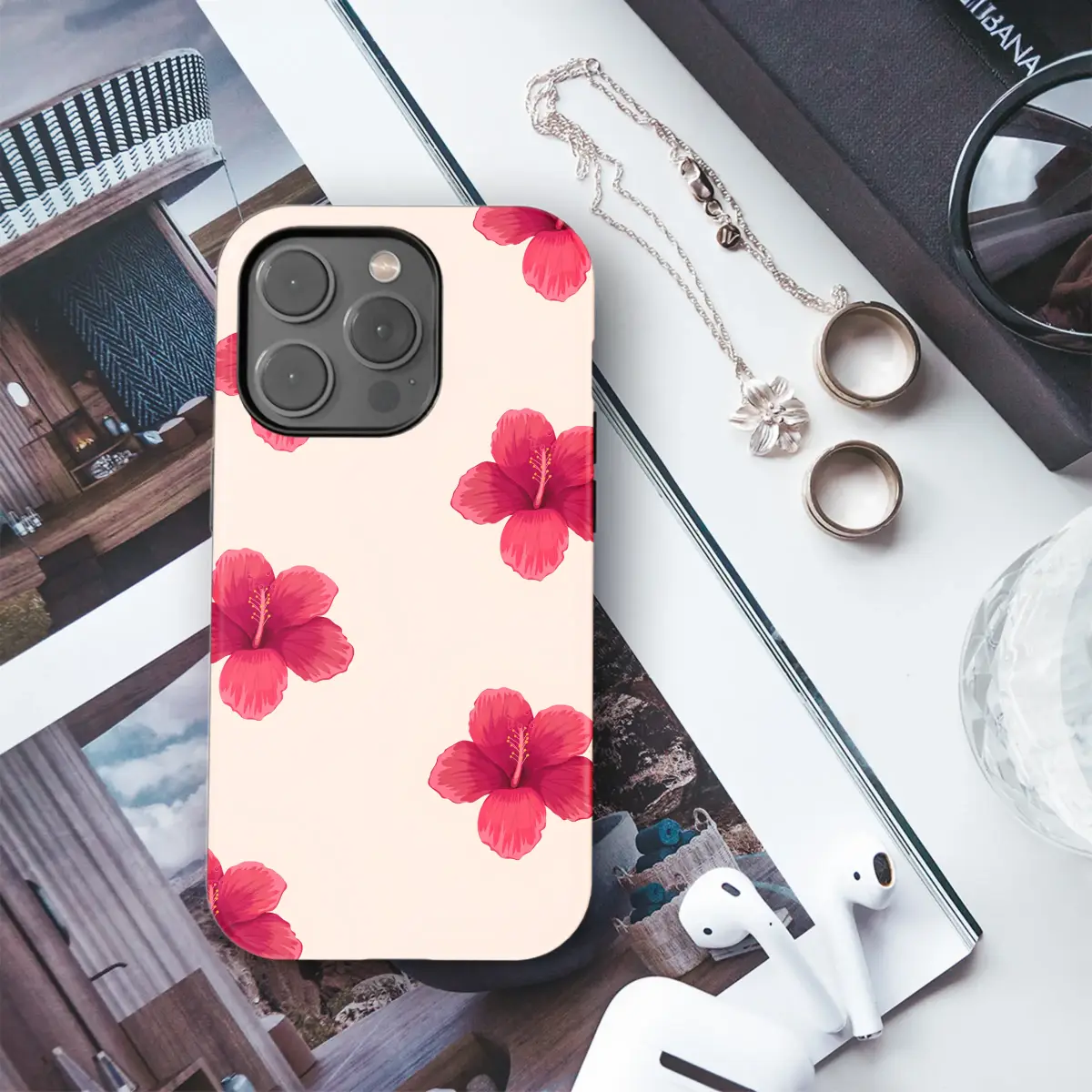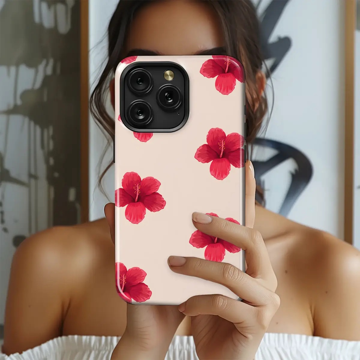 Bring a vibrant touch of the tropics to your daily life with this eye-catching design. It features a seamless pattern of detailed red hibiscus flowers, rendered in rich shades of scarlet and crimson. Set against a soft, creamy background, the bright floral motif creates a cheerful and stylish look, perfect for adding a pop of color and a summer vibe.