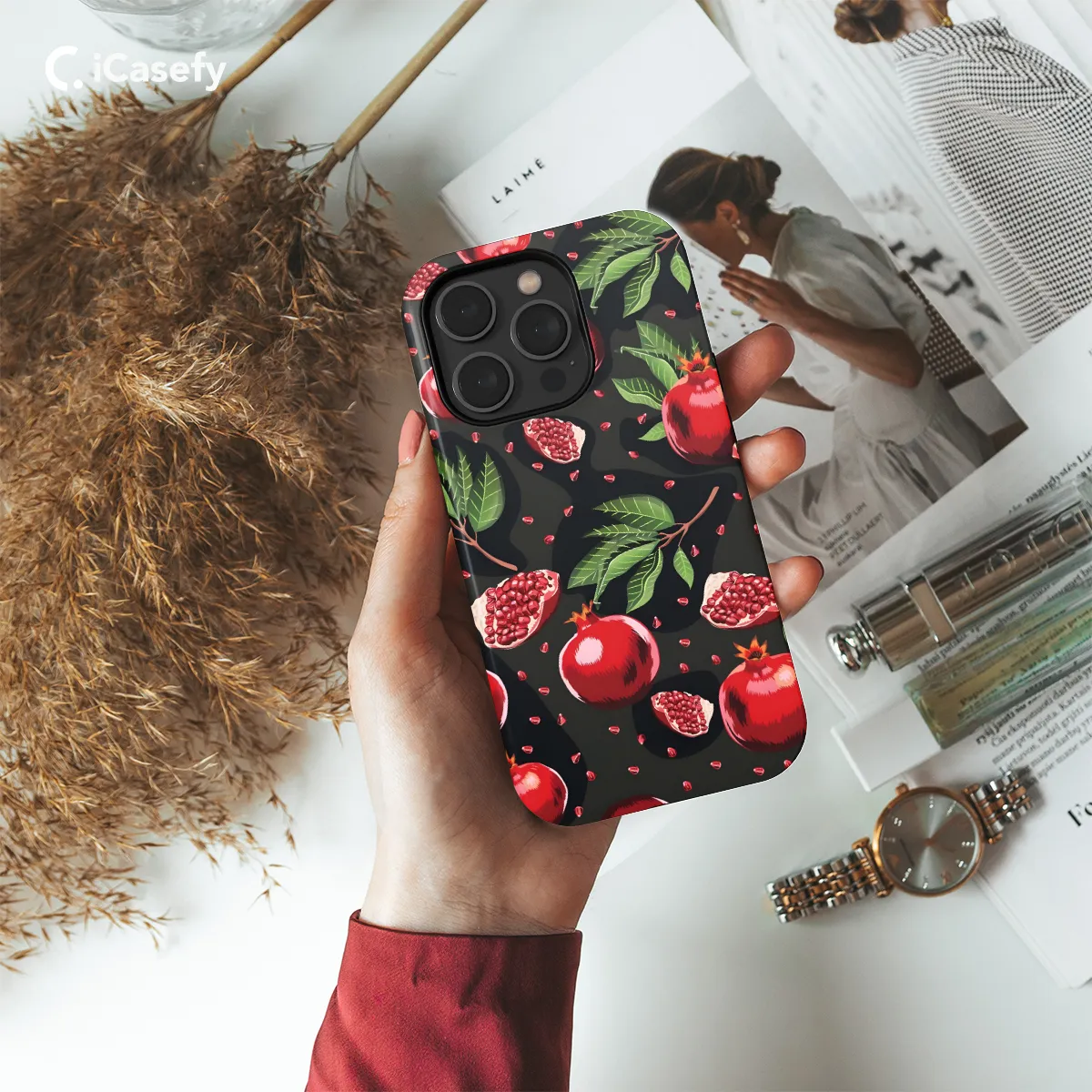 Embrace the radiant charm of your device with our Red Pomegranate Pattern Phone Case. Its vibrant print features cascading pomegranates against a subtle red backdrop, adding an eye-catching flair to your daily tech companion. Crafted with precision to fit a wide range of iPhone, Samsung, and Pixel models, this case not only protects your device from bumps and scratches but also elevates its style. Its slim profile and lightweight design maintain the sleekness of your phone while providing essential protection.