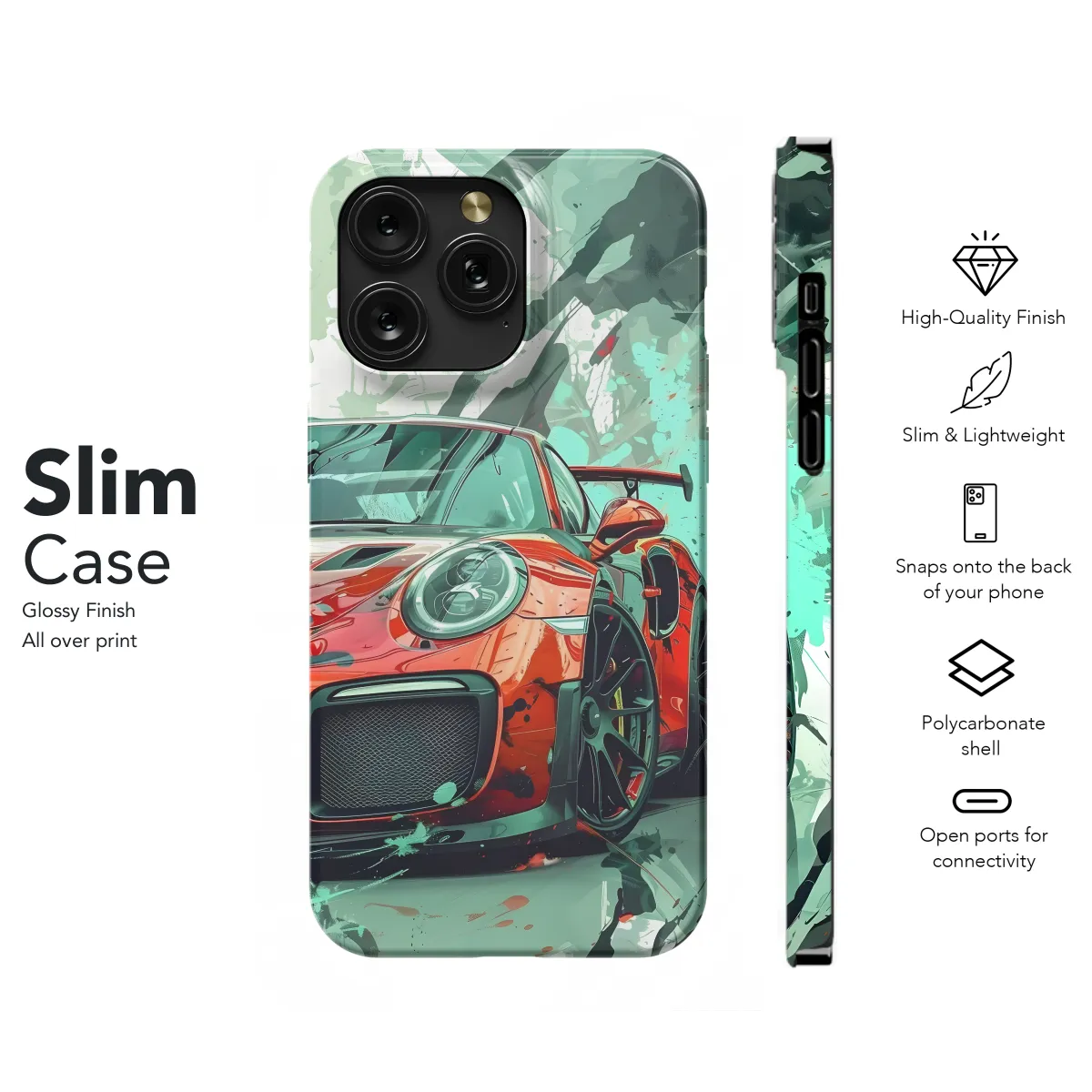 **Sturdy and Stylish Protection** Introducing the Red Speed Splash GT3 Phone Case, the ultimate shield for your precious smartphone. Its robust construction ensures exceptional protection against bumps, drops, and scratches, while its sleek red exterior adds a touch of style to your device. **Precise Fit and Wireless Charging Compatibility** Meticulously engineered to fit your iPhone, Samsung, or Pixel perfectly, our case provides easy access to all ports and buttons. Plus, it supports wireless charging, so you can keep your phone powered up without removing the case. **Splash-Resistant Barrier** The Splash GT3 case acts as a reliable splash-resistant barrier, shielding your phone from accidental spills or rain. Keep your device safe and sound, even in unpredictable weather conditions. **Durable and Comfortable Grip** Made from high-quality materials, this case is built to last. Its non-slip finish provides a secure and comfortable grip, ensuring your phone stays safely in your hand. **Stylish Red Colorway** Elevate your phone's aesthetics with our vibrant red colorway. Whether you're a fashion enthusiast or simply appreciate a touch of color, the Red Speed Splash GT3 case is sure to complement your style.