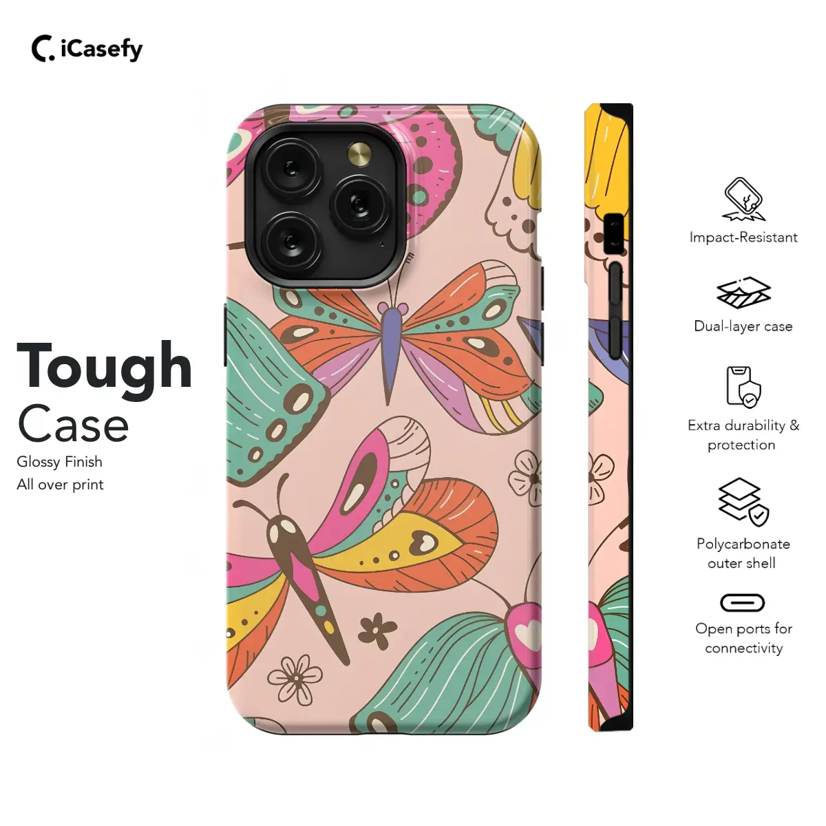Escape into a whimsical realm with this enchanting phone case, adorned with a vibrant tapestry of groovy butterflies and blooming daisies. Each intricate detail is meticulously crafted to bring a touch of retro charm to your device. From the iPhone to Samsung and the latest Pixel, this cover embraces the widest range of smartphones, ensuring that your lifeline to the digital world is always protected in style.