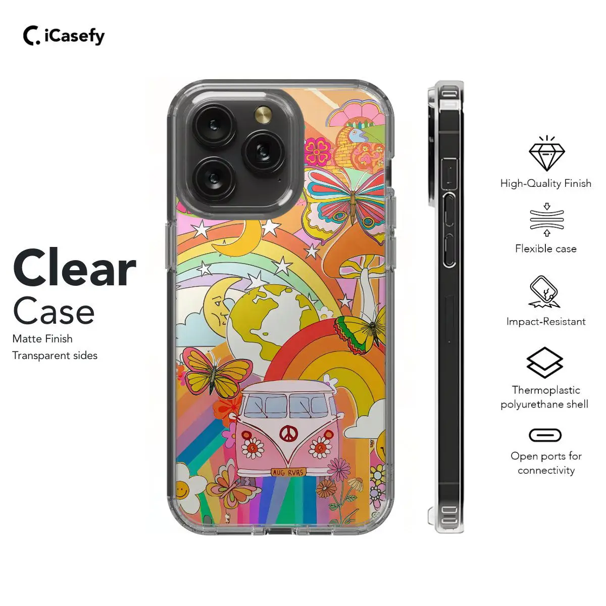 Embrace the vibrant spirit of the 70s with this retro-inspired phone case featuring a groovy hippie floral rainbow design. With its psychedelic colors and trippy patterns, this accessory captures the free-spirited energy of the era. Carry a touch of retro nostalgia with you wherever you go, letting your device become a statement piece that celebrates the timeless appeal of hippie culture and groovy vibes.