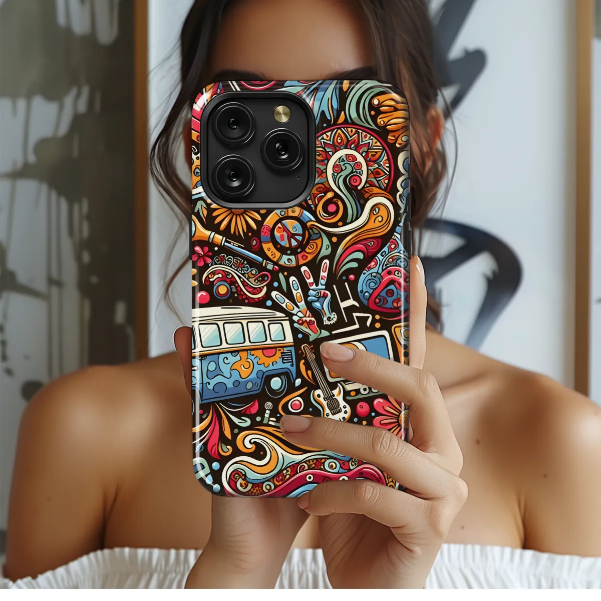 Step back in time with our Retro Hippie Phone Case, a groovy fusion of style and protection. This case exudes peace, love, and psychedelic vibes, transporting you to the golden era of the counterculture. Its vibrant colors and enchanting patterns will ignite nostalgia and spark conversations wherever you go. Crafted from durable materials, it shields your phone from daily wear and tear, ensuring it remains as groovy as ever. Let your inner hippie shine through with our Retro Hippie Phone Case – the perfect accessory for embracing the spirit of love and freedom.
