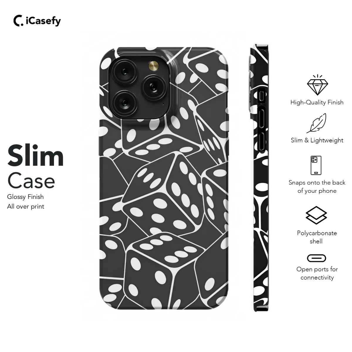 Protect your phone with style using our eye-catching Rolling Dice Phone Case. Compatible with iPhone, Samsung, and Pixel devices, this case features vibrant rolling dice graphics that will turn your phone into a playful accessory. Its durable construction ensures that your phone remains safe from accidental drops and scratches, while its slim design maintains the sleekness of your device.