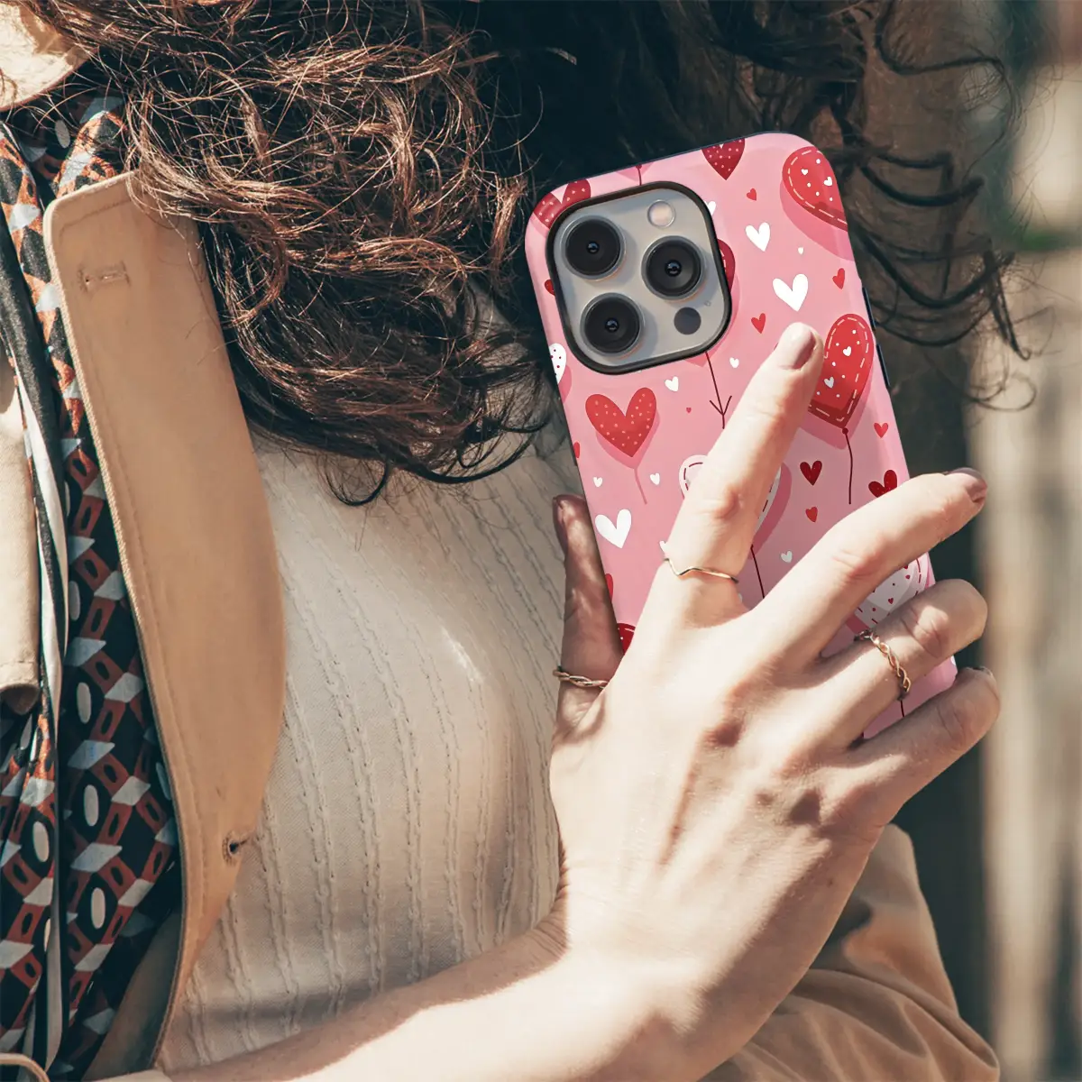 Wrap your device in a cloud of love with this adorable heart balloon pattern. Featuring a playful array of red and white stitched hearts floating against a soft pink background, this design captures a sweet, whimsical, and romantic spirit. It's an ideal way to showcase a loving and cute aesthetic every day.