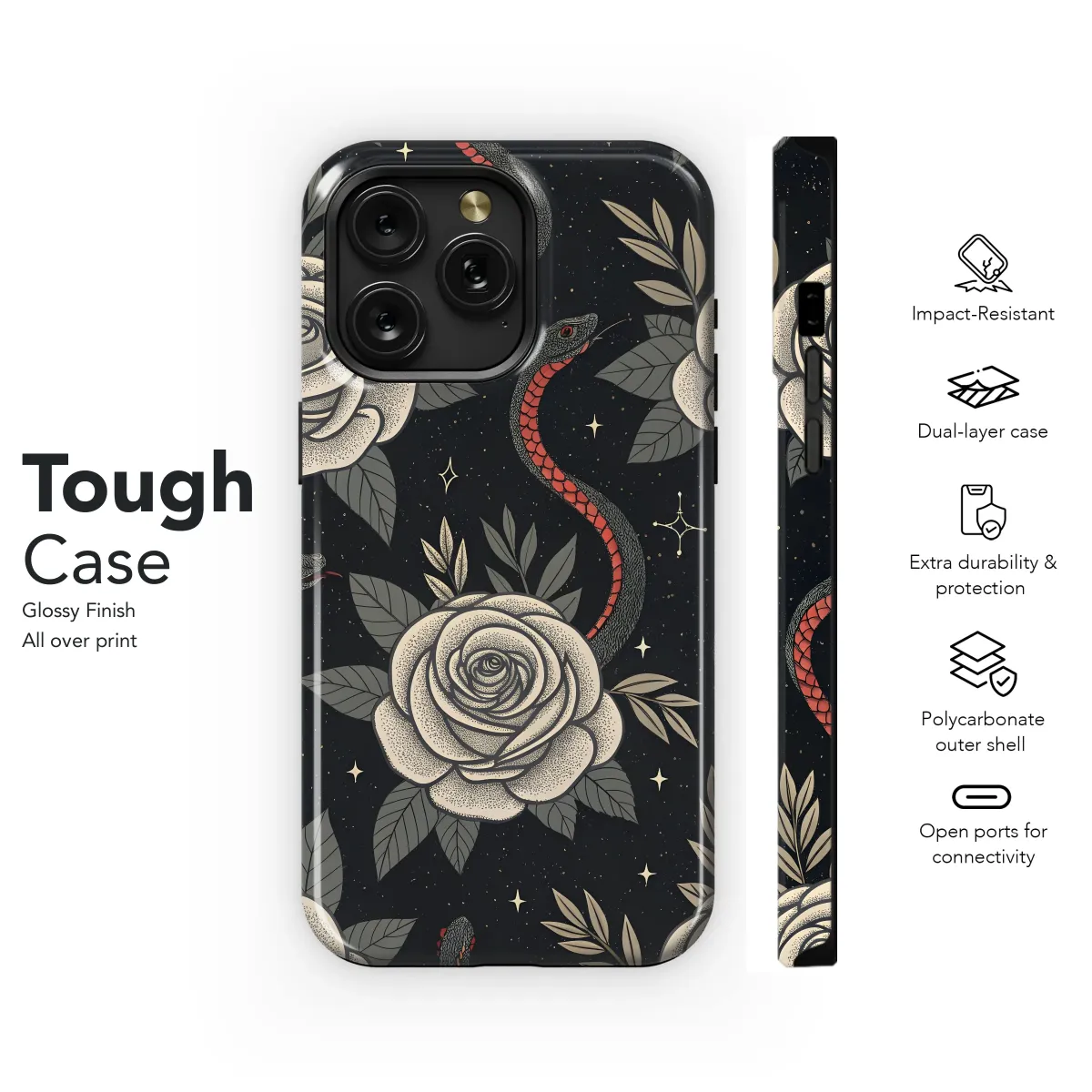 Oppo Reno8 Pro Roses & Serpents Phone Case - Image 1