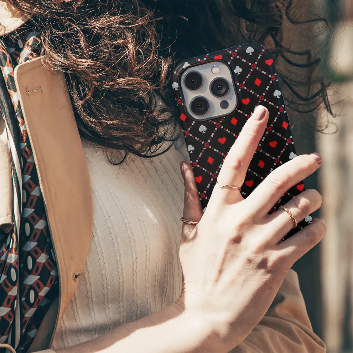 Elevate your style with this sophisticated playing card design. The bold red and gray suits are arranged in a striking diamond pattern against a classic black background, creating a visually captivating and subtly luxurious aesthetic. This timeless design offers a unique blend of elegance and playful charm, perfect for those who appreciate a touch of classic casino style. The intricate detail ensures your accessory will stand out from the crowd, making it a conversation starter wherever you go. This high-quality print is durable and vibrant, ensuring your design remains as bold and beautiful as the day you received it. Add a touch of high-stakes glamour to your everyday life; order yours today and experience the difference! #playingcards #casino #cards #red #black #gray #diamondpattern #luxury #sophisticated #elegant #stylish #accessories #design #print #highquality #unique