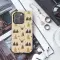 Embrace the cozy spirit of the holidays with this charming rustic winter design. This festive pattern features a minimalist forest scene with striking black reindeer silhouettes, cozy cabins, and elegant gold and black pine trees. Set against a warm beige background with scattered stars and dots, this design captures the serene magic of a quiet Christmas in the woods.