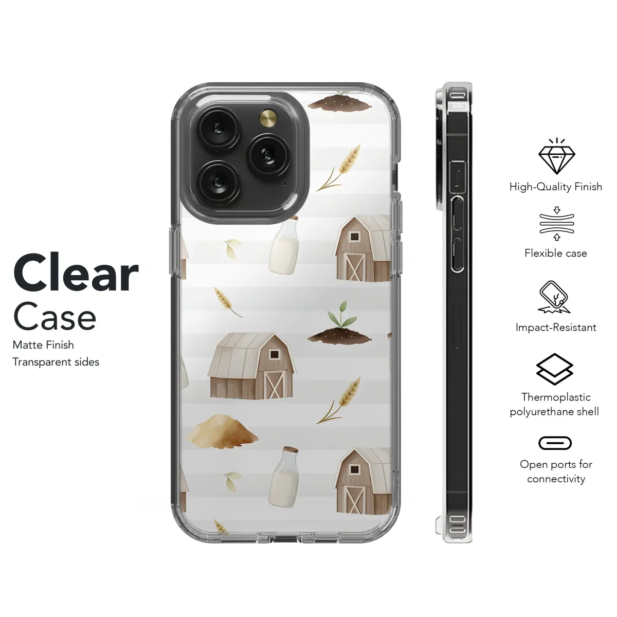 Embrace rustic charm with this delightful countryside-inspired design, perfect for adding a touch of pastoral beauty to your everyday tech. Featuring watercolor illustrations of quaint barns, fresh milk bottles, sprouting seeds, golden wheat stalks, and soft leafy accents, this pattern evokes the serene simplicity of farm life. The gentle color palette and clean, repeating motif create a calming and aesthetically pleasing visual. Ideal for those who appreciate farmhouse style, rural landscapes, or simply a touch of nature, this design offers a unique way to personalize your device. Protect your device with style. This print captures the essence of a picturesque homestead. Get yours today and bring the peace and beauty of the countryside wherever you go. Keywords: farmhouse, rustic, country, barn, milk, wheat, seed, watercolor, pattern, rural, nature, pastoral, homestead, landscape, design.