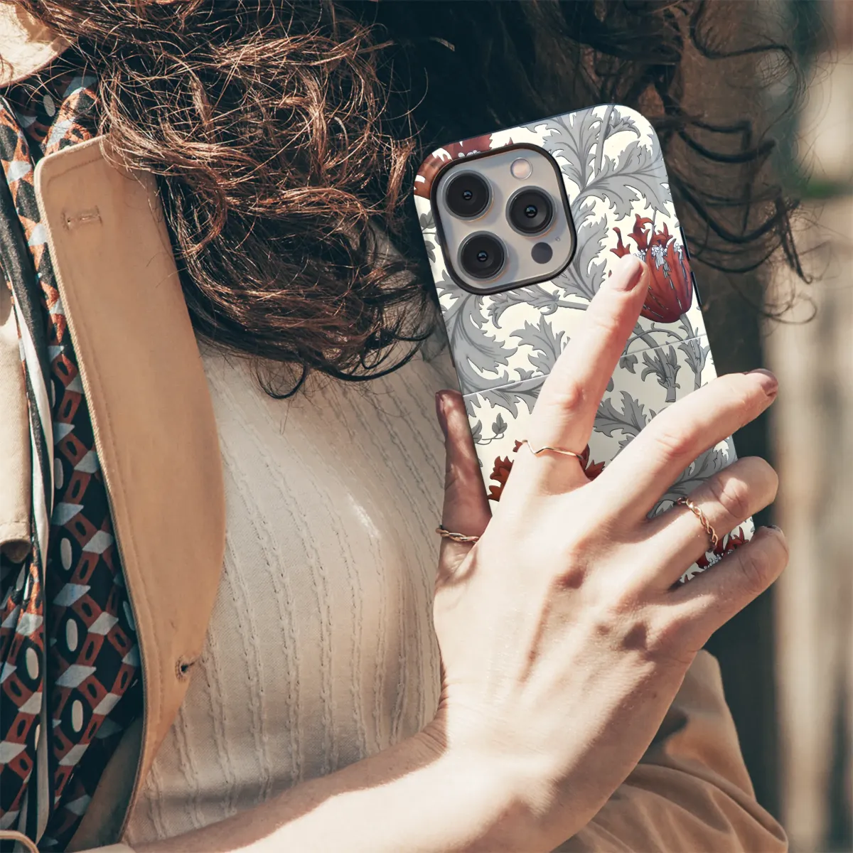 Elevate your style with this exquisite floral design, featuring rich terracotta blooms against a backdrop of elegant, silvery gray foliage. Inspired by vintage botanical illustrations, this captivating pattern boasts a sophisticated aesthetic, perfect for adding a touch of timeless charm to your personal accessories. The intricate detailing and vibrant color palette create a striking visual impact, transforming a simple item into a statement piece. This design is printed using high-quality, durable inks, ensuring the vibrant colors and crisp details remain beautiful for years to come. Its classic yet modern appeal makes it a versatile choice, suitable for various styles and tastes. Add a touch of artistic flair to your everyday life with this stunning, uniquely designed accessory. This beautiful print is guaranteed to turn heads and will complement your personal style perfectly. The detailed botanical print offers a sophisticated and elegant look, ideal for adding a touch of refined beauty to your belongings. Its versatility ensures it blends seamlessly into a variety of aesthetics. Order yours today and experience the difference quality and style make.
